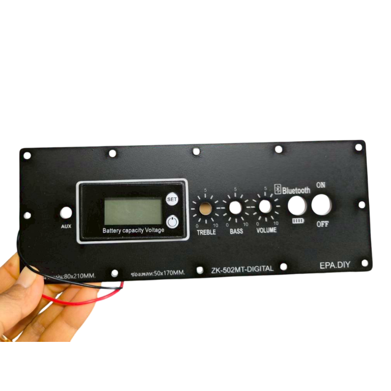 เพลทลำโพงบลูทูธรุ่นZK-502MTแบบหน้าจอดิจิตัลวัดแบต ขนาด80x210MM.ช่องวางอุปกรณ์50x170MM.แสงLEDผ่านได้