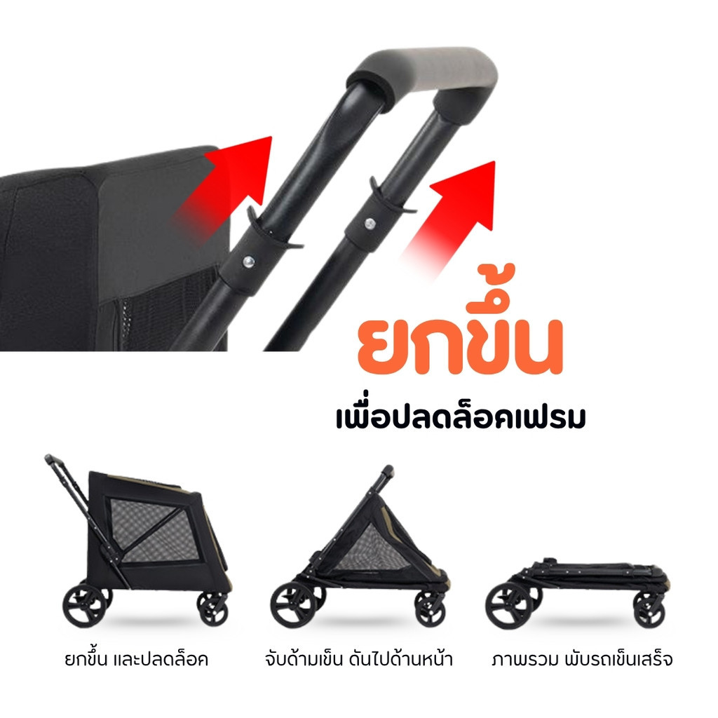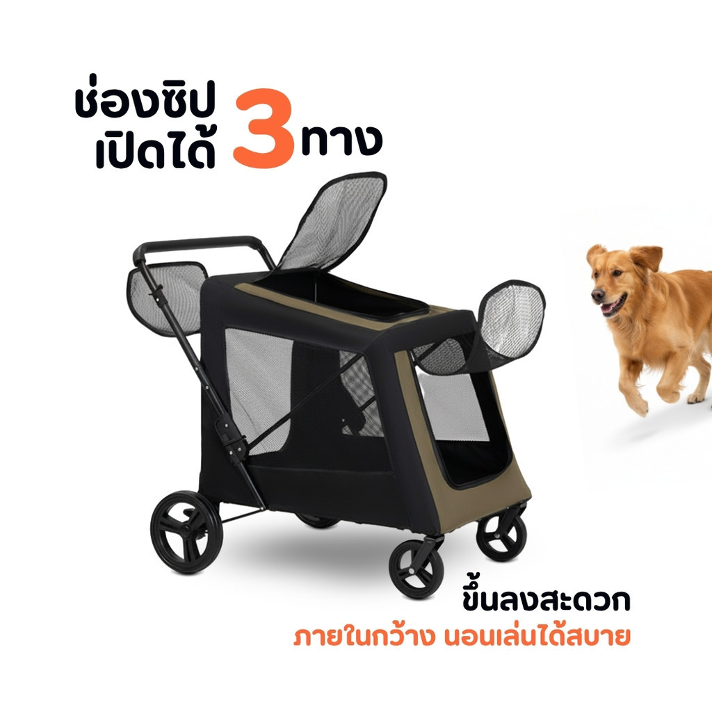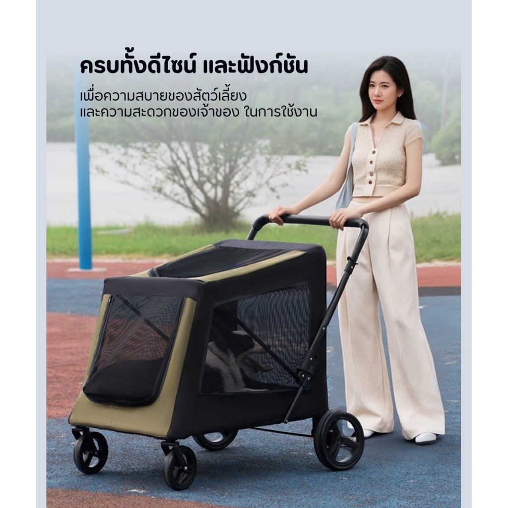 [FurryJoy] รถเข็นสุนัขไซส์ใหญ่พิเศษ รับได้ 55KG โครงสร้างเหล็กหนา พับง่ายใส่รถได้ ล้อลื่นเข็นสบาย ระบายอากาศดีเยี่ยม