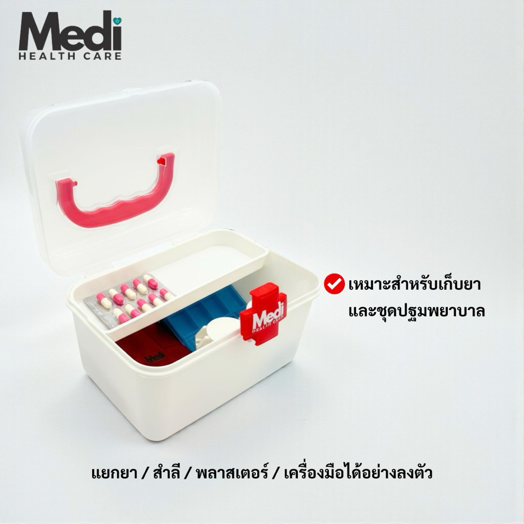 MediBox กล่องยาสามัญประจำบ้าน อย่างหนา เกรดโรงพยาบาล สองชั้นถอดออกได้ กันน้ำ จุได้เยอะ น้ำหนักเบา