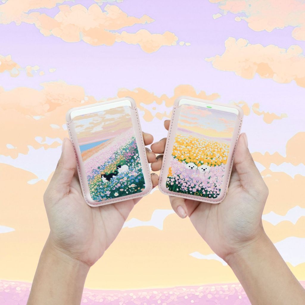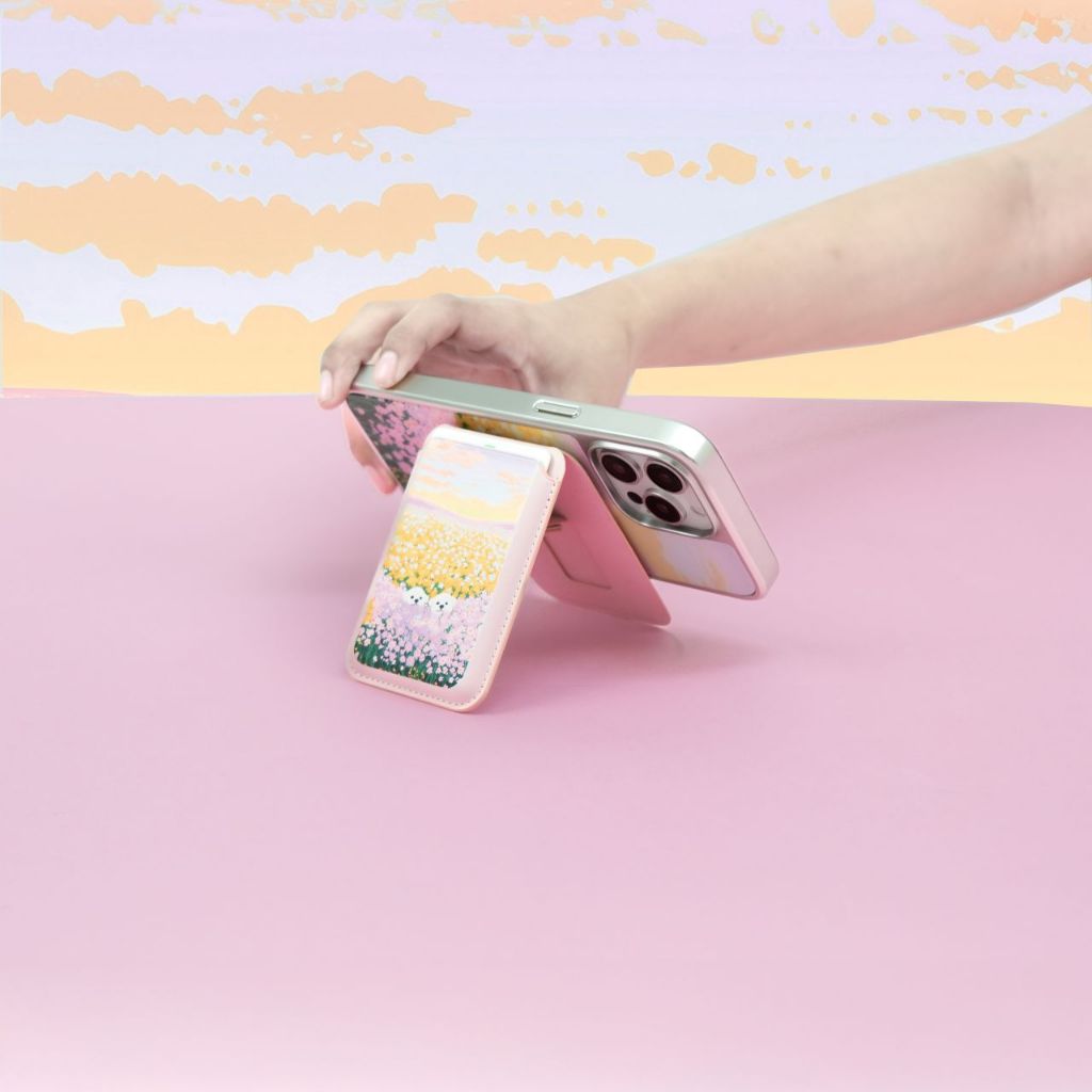 LAONGMOON Magsafe Wallet Stand พิมพ์ลาย Summer Collection กระเป๋าหนังใส่บัตรขาตั้ง ติดมือถือได้