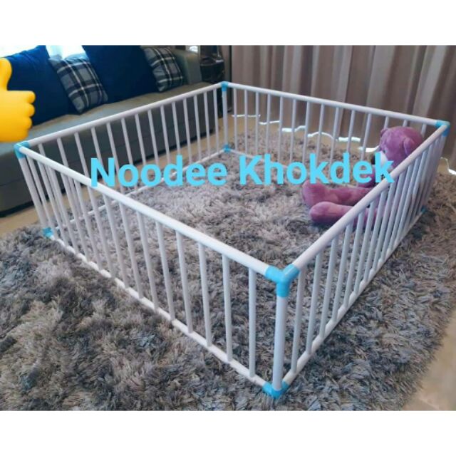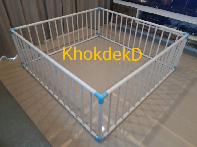 15S83 AFคอกกั้นเด็กไร้รอยต่อ 5x5ฟุต 150x150 cm. สูง 60 cm. มุมสามทางฉากฟ้าอย่างหนา8หุนไม่ลดสเปค ไม่ใช้ข้องอท่อบางไม่ทำ