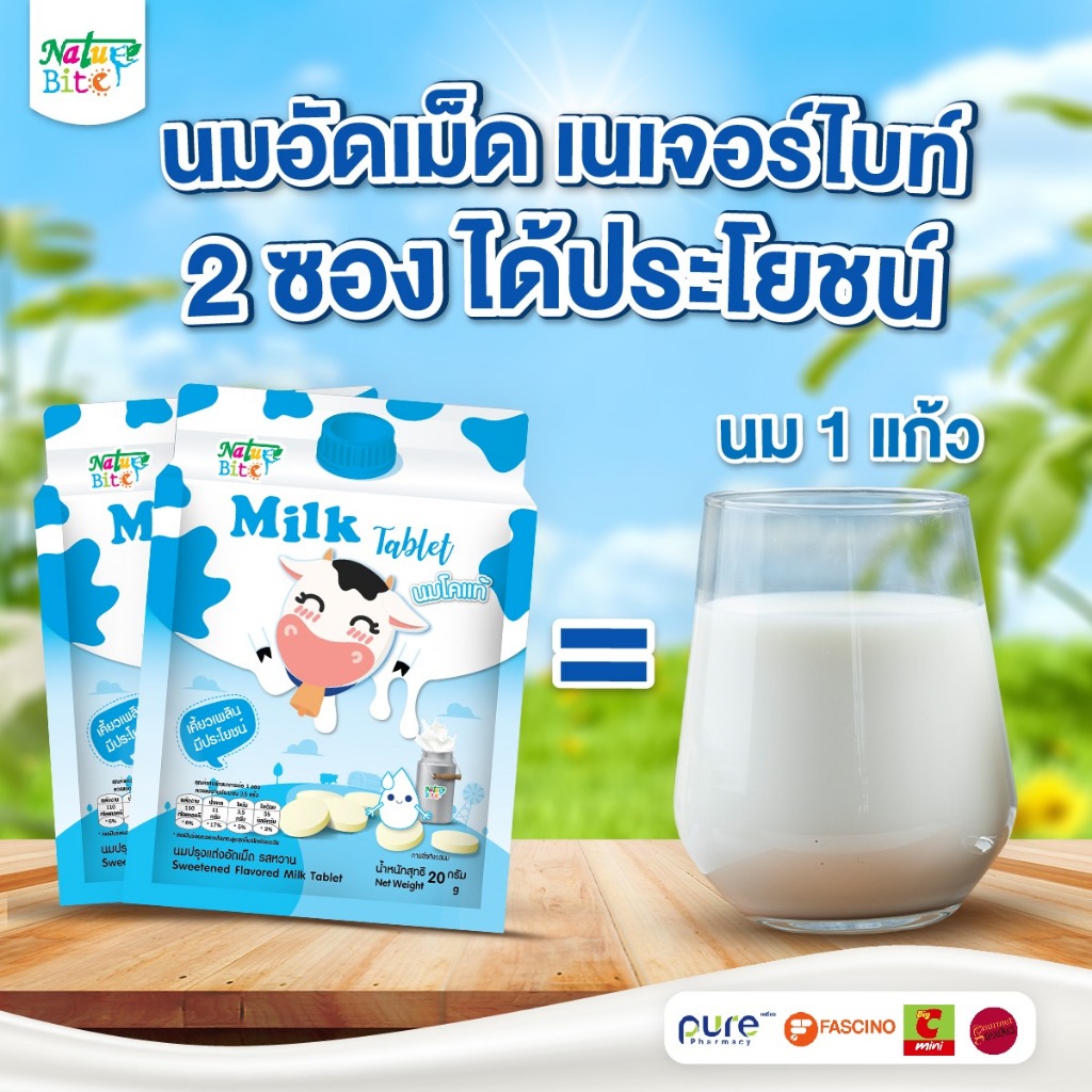 Nature Bite Chocolate/Strawberry/Milk Tablet เนเจอร์ ไบท์ ช็อคโกแลต/สตรอว์เบอร์รี่/นม [10 ซอง][สินค้ามีให้เลือก 3 รส]