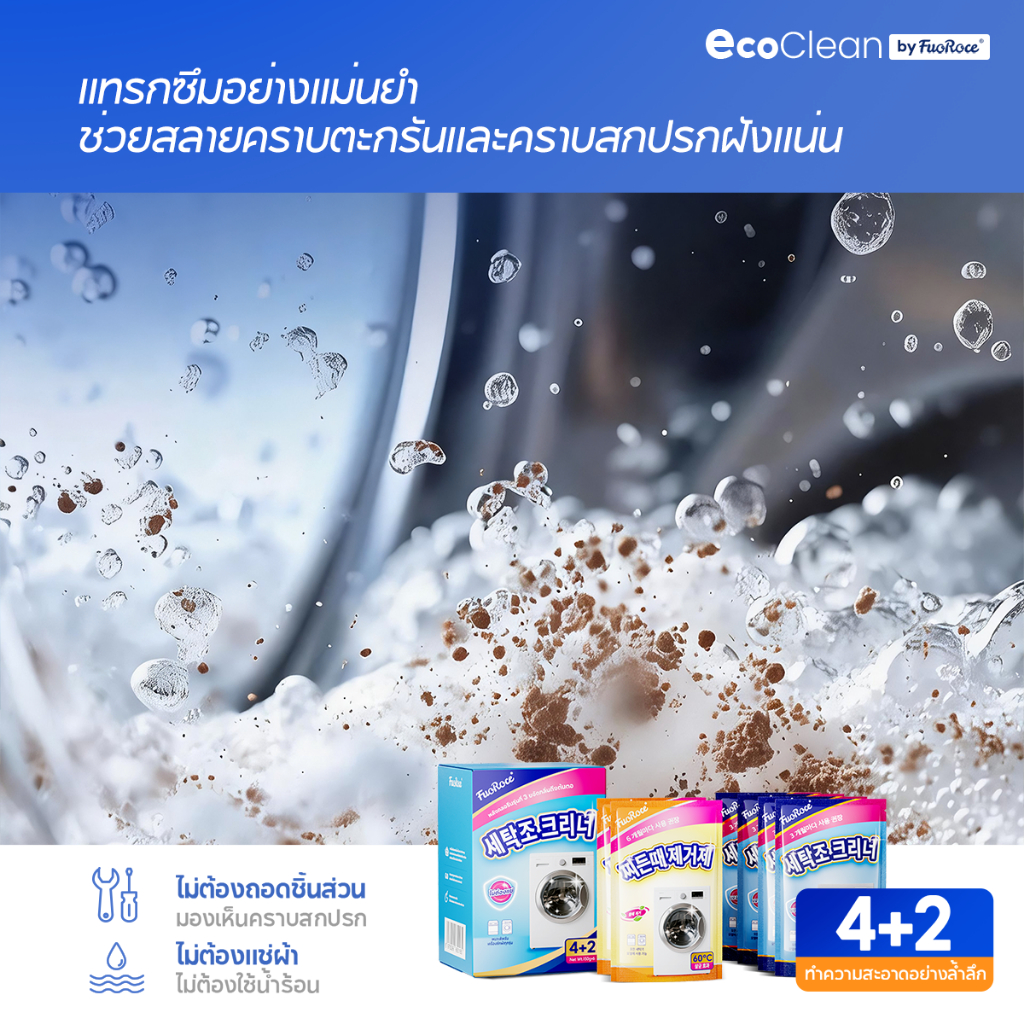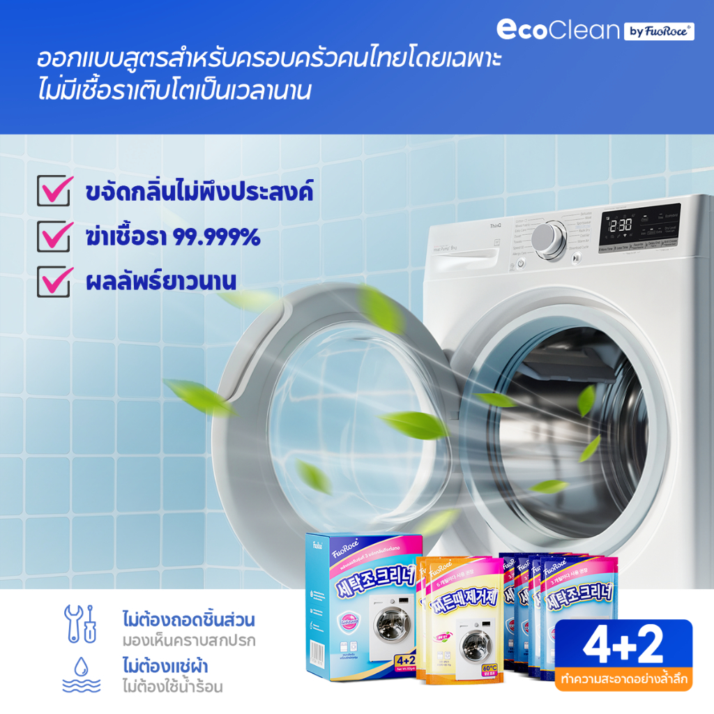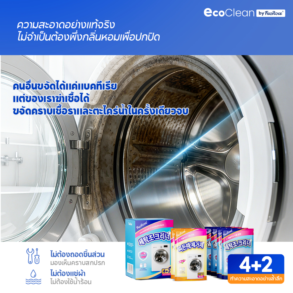 EcoClean ผงล้างเครื่องซักผ้า 2สูตร ฆ่าเชื้อ99.999% ขจัดเชื้อรา สลายตะกรัน ถังซักผ้าสะอาดเหมือนใหม่ ลดกลิ่นอับทันที ไม่ต้องแช่