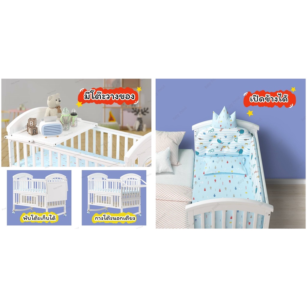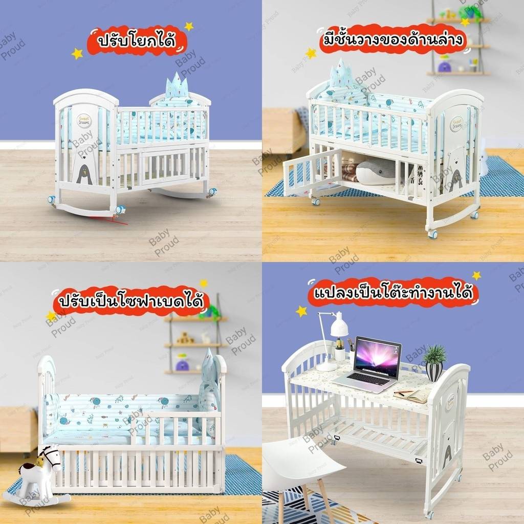💥(ลดเพิ่ม 1098.-ทักแชท) เตียงไม้เด็ก สีขาว รุ่น 5.2 แปลงร่างขยายความยาวได้ ปรับระดับได้ พร้อมโต๊ะ