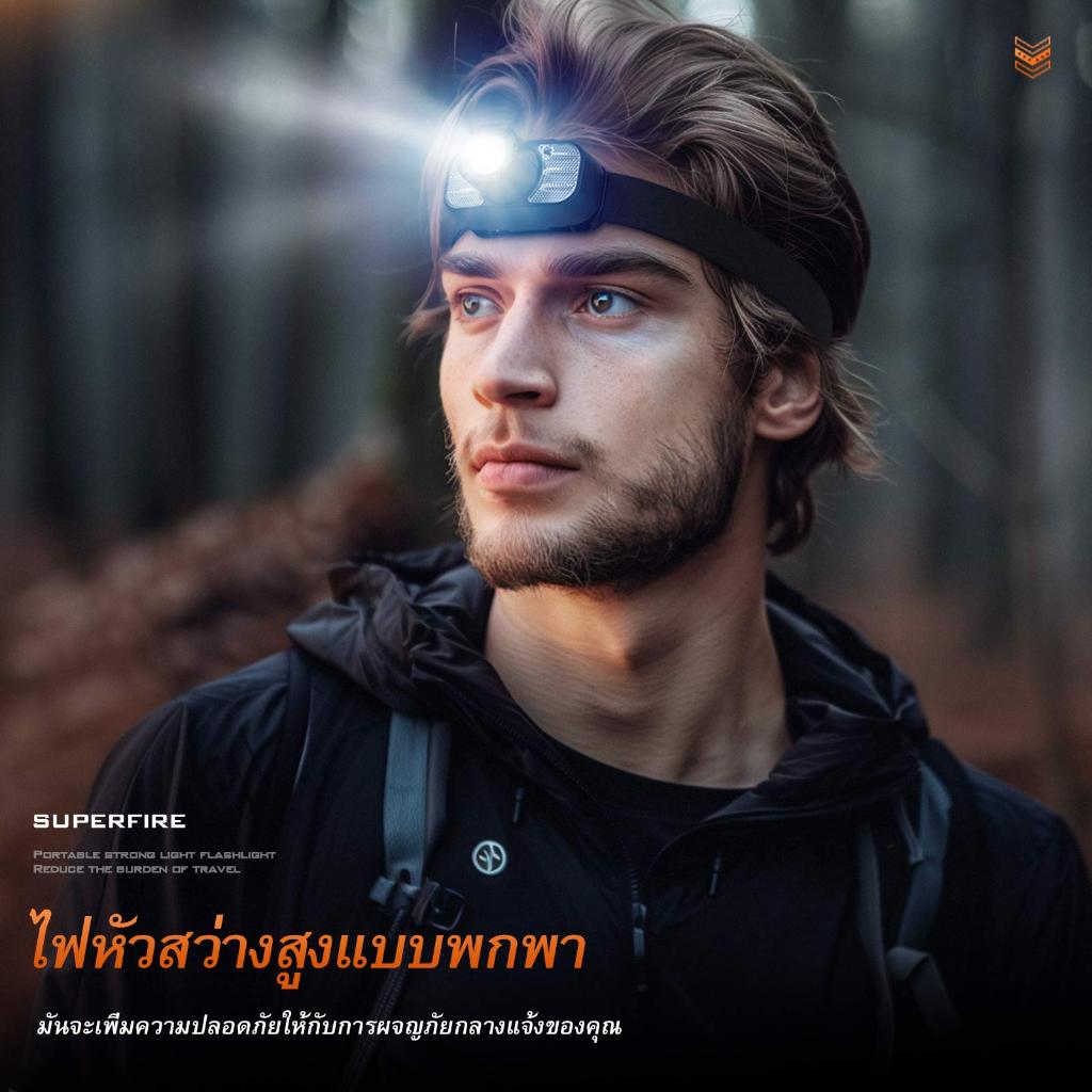 SUPERFIRE HL80-L สินค้าใหม่ ไฟฉายคาดหัว rechargeable ซูมได้ LED สว่างสูง กันน้ำ ชาร์จ USB