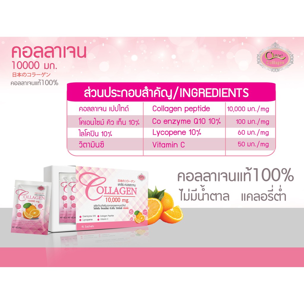 แคล์ร คอลลาเจน 10,000 มก. คอลลาเจนเปปไทด์ คอลลาเจนแท้100% รสส้ม ผลิตภัณฑ์เสริมอาหาร (10ซองx1กล่อง)