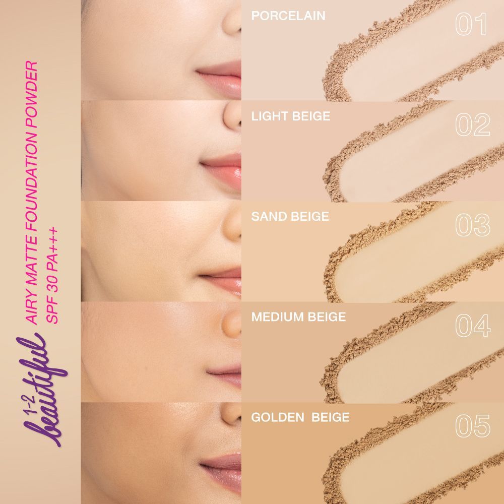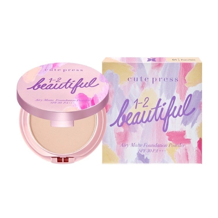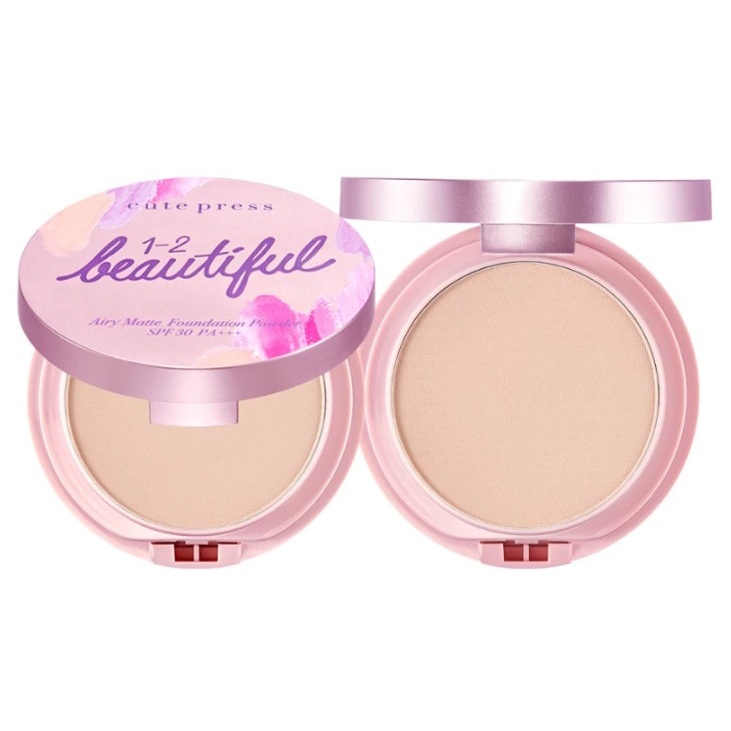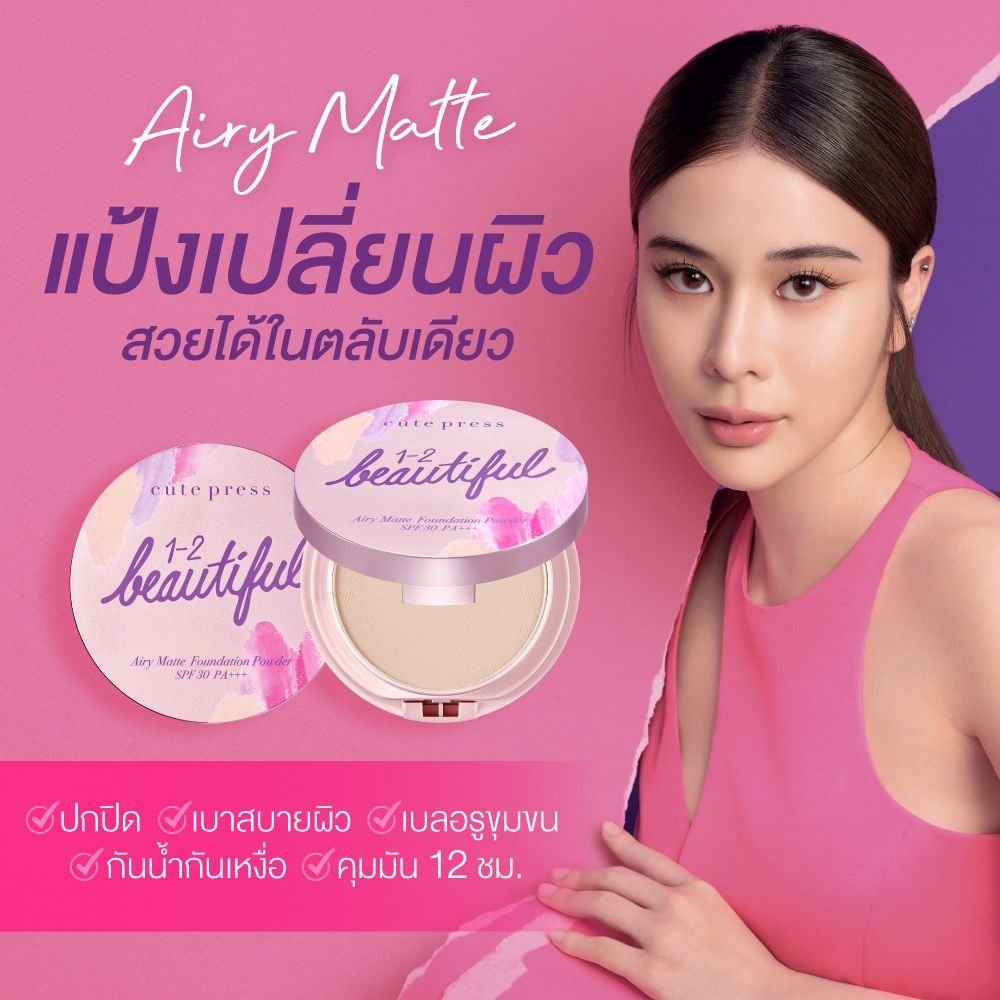 ส่งด่วน/ของแท้/ราคาถูก CUTE PRESS แป้งผสมรองพื้น 1-2-BEAUTIFUL AIRY MATTE FOUNDATION POWDER SPF 30 PA+