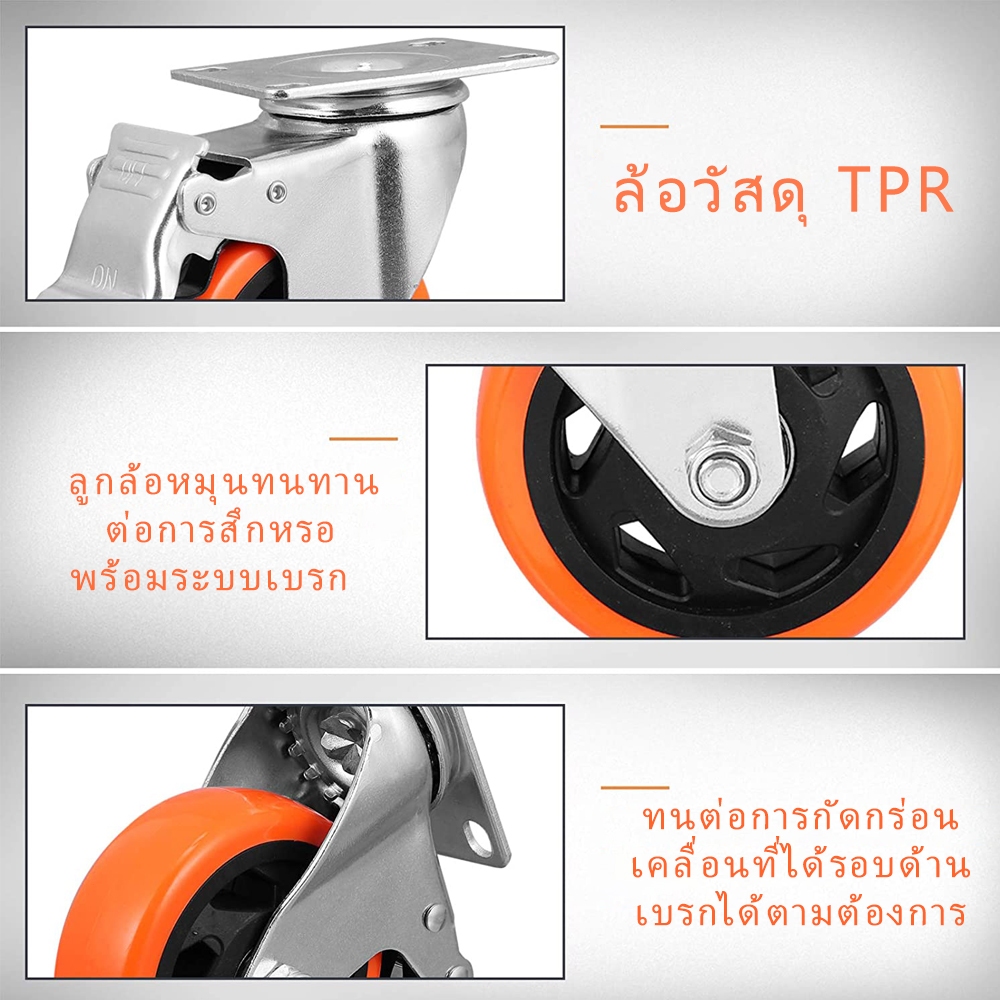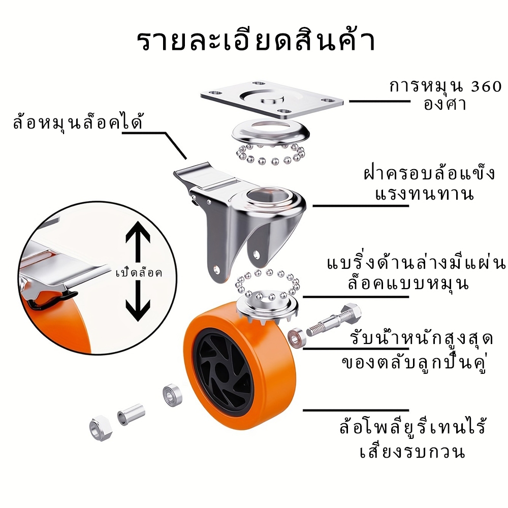 ล้อรถเข็น ล้อPU สีส้ม1.5/2/3/4/5นิ้ว ล้อยูริเทน ล้อเป็น/แป้นตาย/มีเบรค แบริ่งคู่ ลูกปืน อะไหล่รถเข็น เก้าอี้ เปลี่ยนง่าย