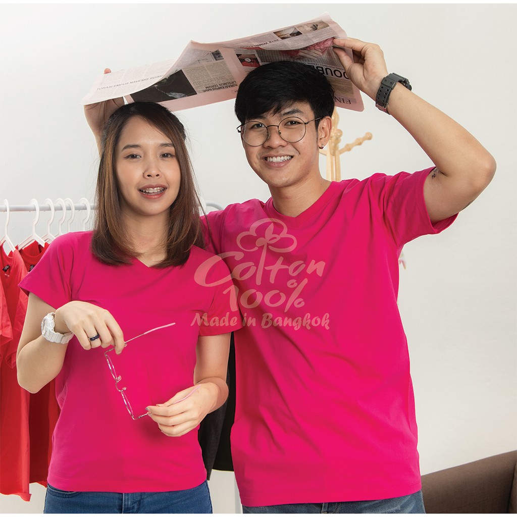เสื้อยืด (ออกใบกำกับภาษีได้) สีบานเย็น คอกลม คอวี (พร้อมส่ง สินค้าผลิตในไทย)