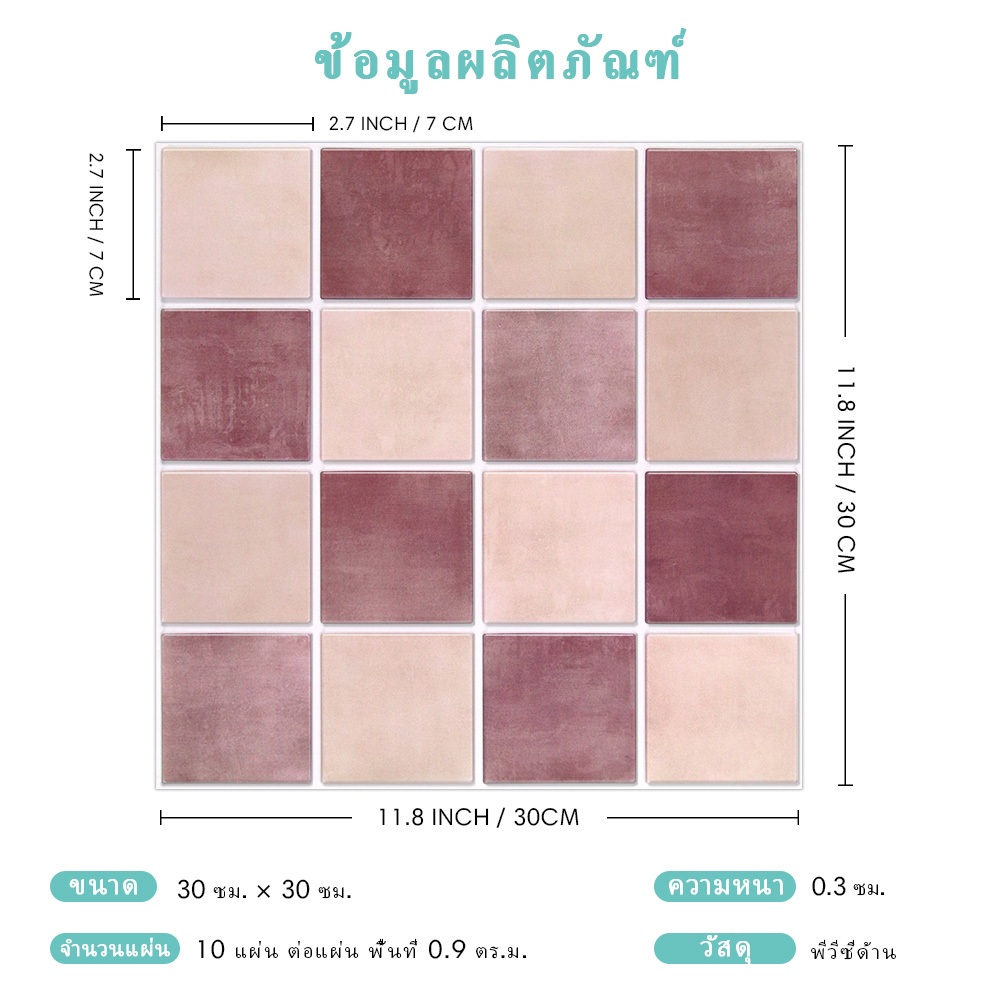 [10 ชิ้น] wallpaper ติดผนัง มีกาวในตัว 3 มิติ DIY กันน้ำ คุณภาพสูง ตกแต่งผนัง สําหรับติดตกแต่งบ้าน 30X30cm