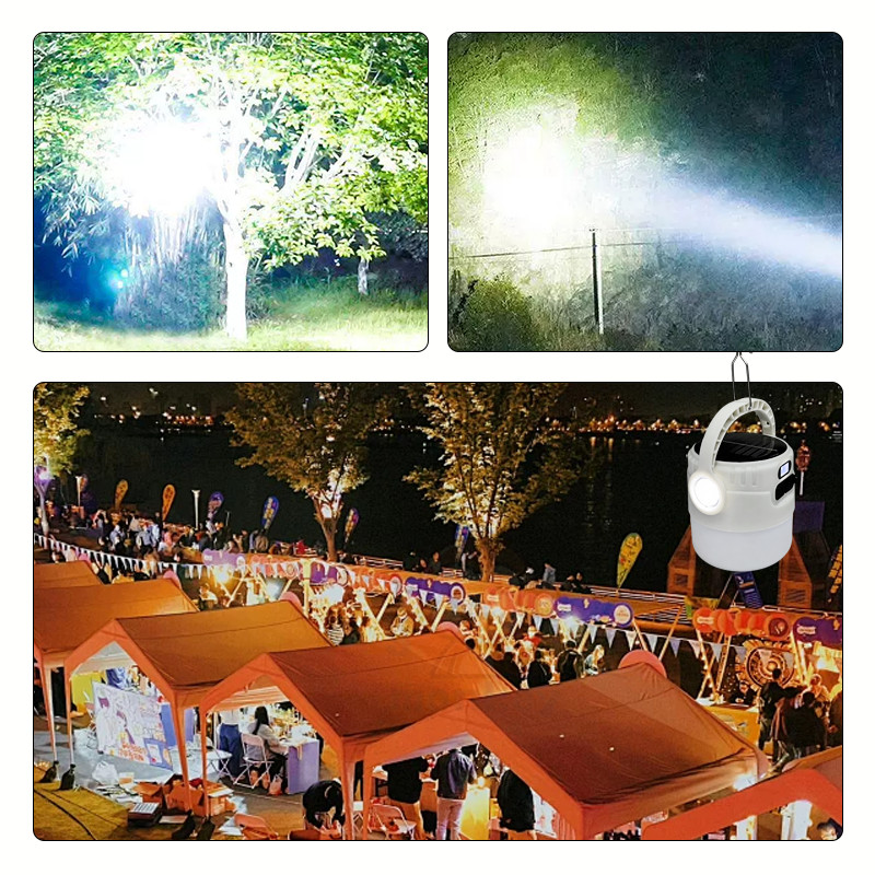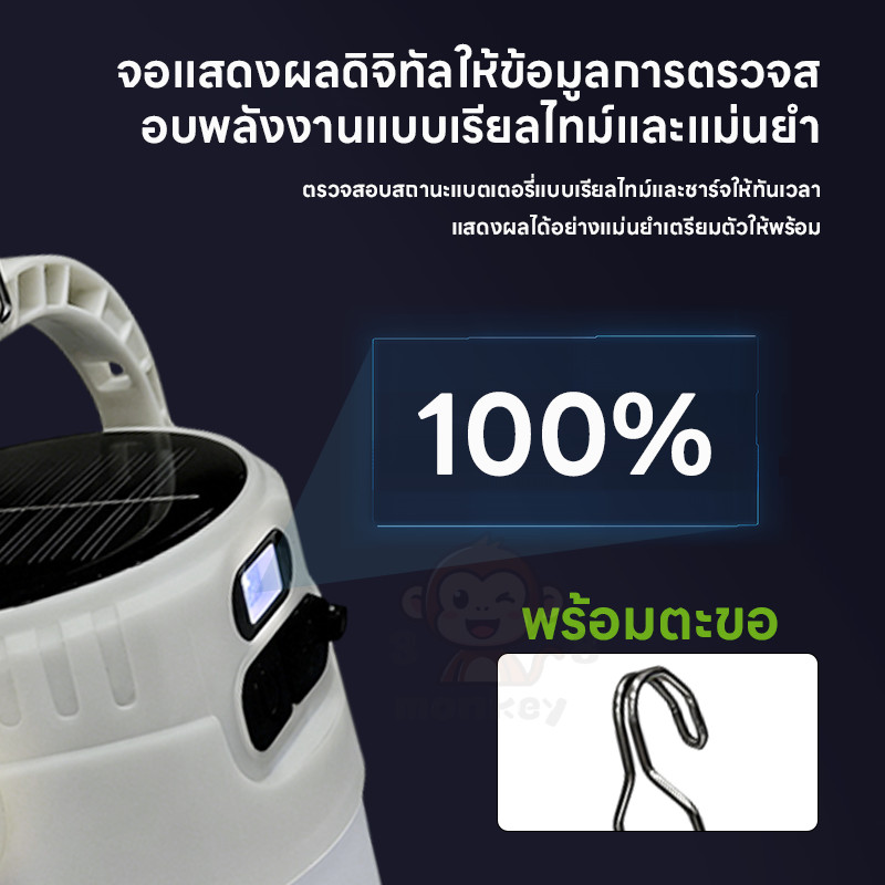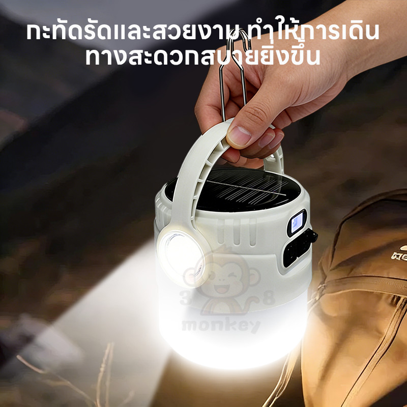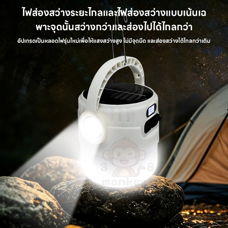 ไฟแคมป์ปิ้ง ไฟตั้งแคมป์โซล่า LED ปรับ4โหมด กันน้ำ ชาร์จ แสงสูง ใช้แคมป์เต็นท์ มีตะขอเกี่ยว ทนทาน