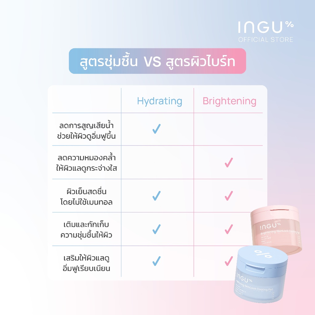 INGU SkinLock Cooling Pad โทนเนอร์แพด สูตร Hydrating เพื่อผิวที่ชุ่มชื้น และ Brightening เพื่อผิวที่แลดูกระจ่างใส 80pads