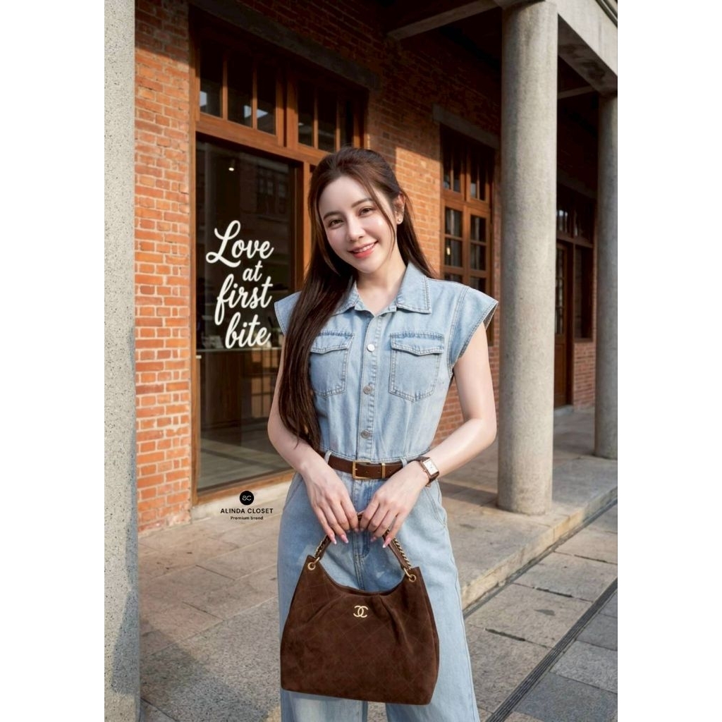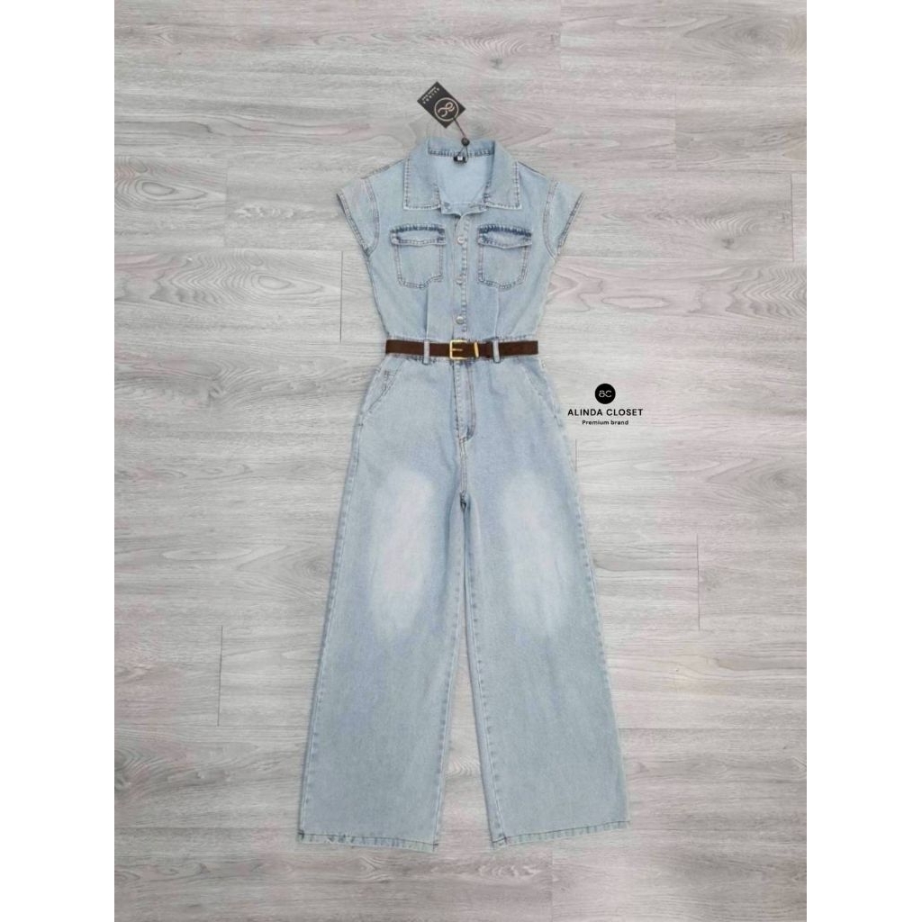 𝘼𝙇𝙄𝙉𝘿𝘼 𝘾𝙇𝙊𝙎𝙀𝙏 ᯓ ★ จั๊มยีนส์ฟอกขายาว ทรงสวย เนื้อผ้าดีมาก + เข็มขัดหนังกำมะหยี่สีน้ำตาลเข้าเซ็ต