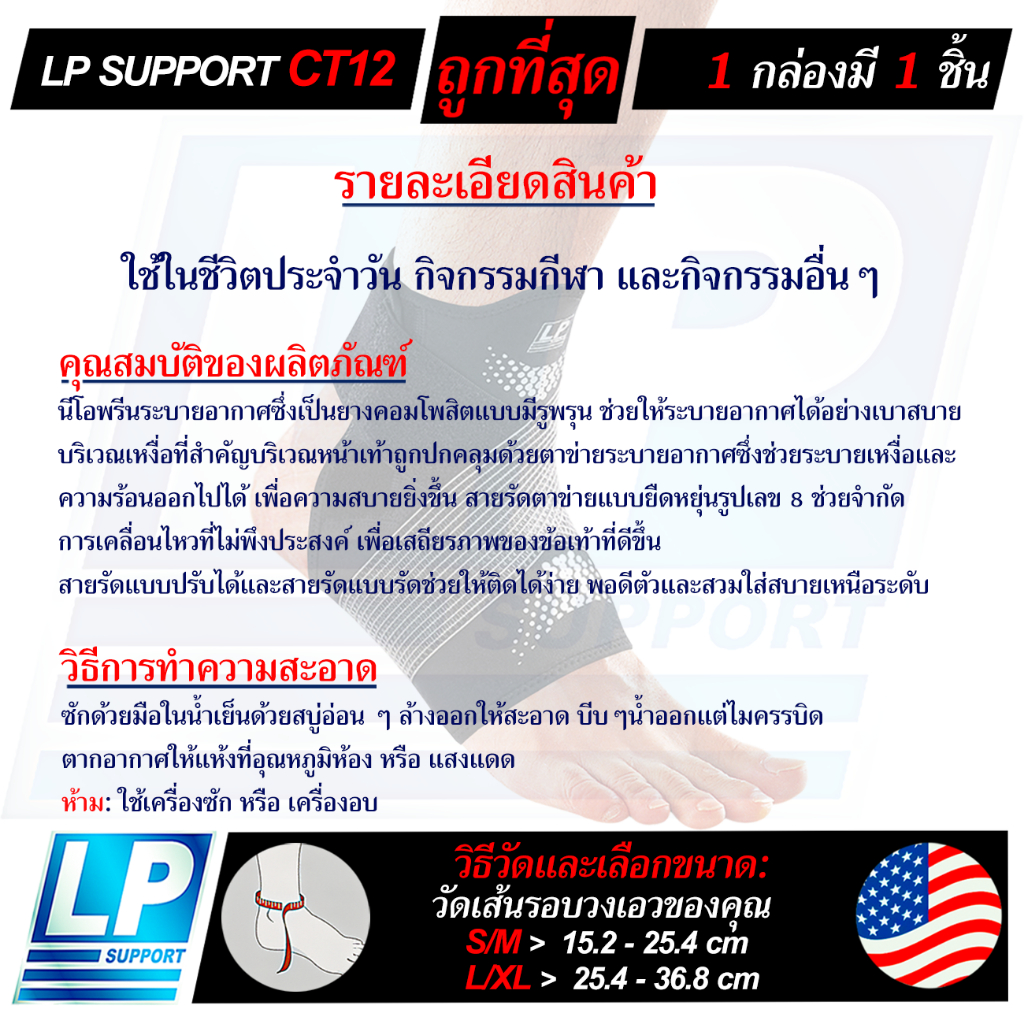 LP SUPPORT CT12 LIGHT SHIELD ADJUSTABLE ANKLE BRACE ซัพพอร์ทข้อเท้า ที่รัดข้อเท้า สายรัดข้อเท้า