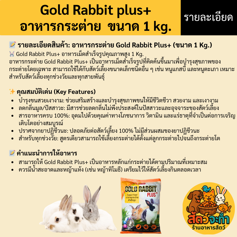 (Set 6 ถุง) (ขนาด 1 kg.) โกลด์ แรบบิท พลัส Gold Rabbit Plus+ 1kg หนูแกสบี้ หนูตะเภา อาหารกระต่าย