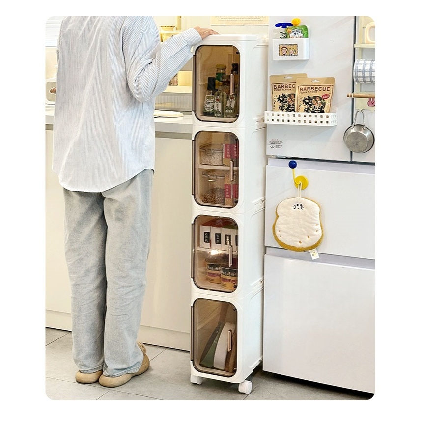 HOTUS ตู้ชั้นแคบ 1-5 ชั้น ชั้นวางของแบบมีล้อพลาสติกสำหรับพื้นที่เล็ก กล่องเก็บของมีล้อ ตู้ชั้นแคบเอนกประสงค์ กันน้ำ-ฝุ่น