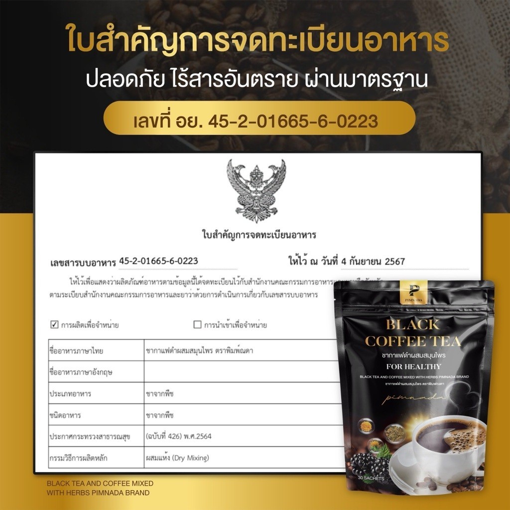 Black coffee tea ชากาแฟดำพิมพ์ณดา ผสมไพลและเถาเอ็นอ่อน ดื่มง่าย บำรุงร่างกาย แก้เคล็ดขัดหยอก