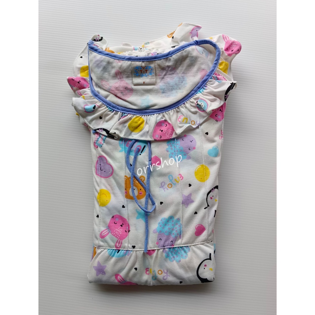 ชุดนอนผู้ใหญ่ ไซส์ฟรีไซส์ F แขนสั้น ขาสามส่วน ผ้ายืด แบบคอระบาย ไม่มีกระดุม