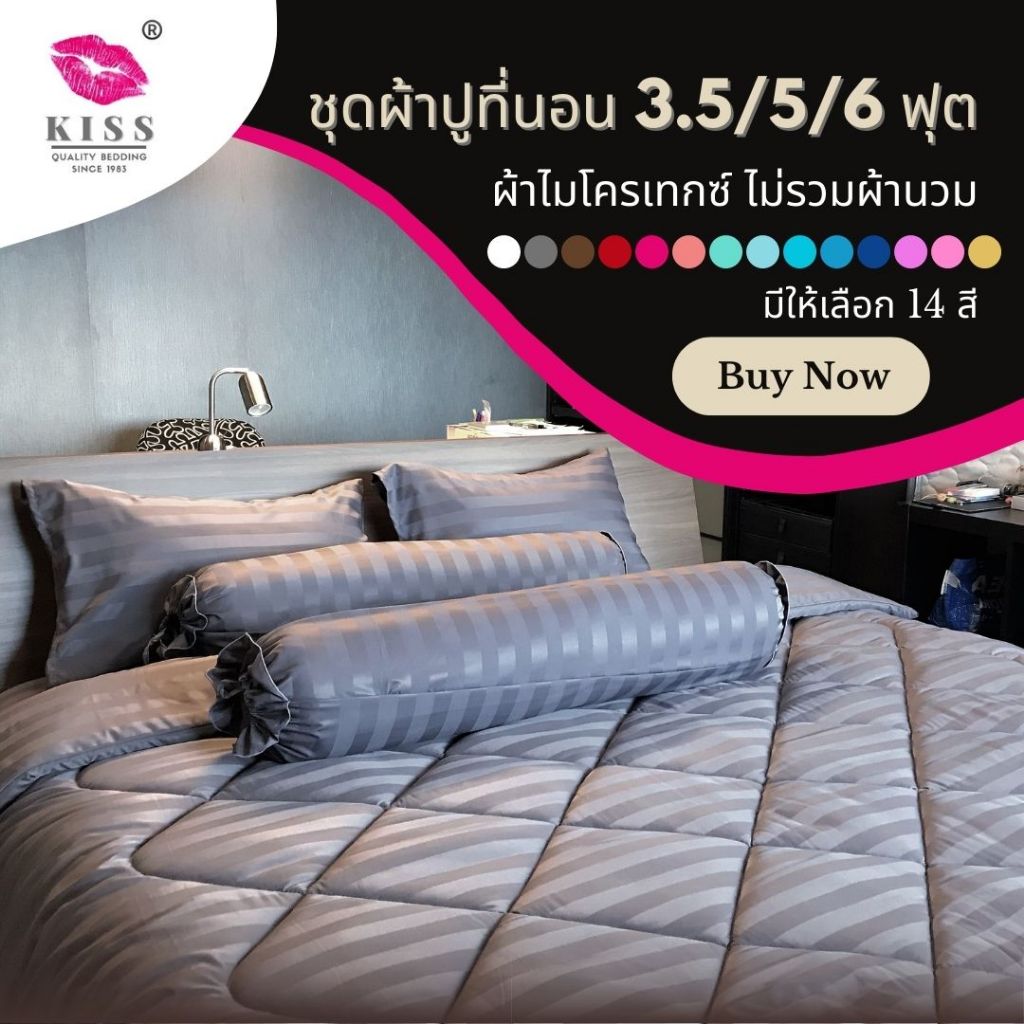 (ชุด)ผ้าปูที่นอนลายริ้ว 3.5 / 5 / 6 ฟุต ไม่รวมผ้านวม ที่นอนหนา 8-10นิ้ว ผ้าไมโครเทกซ์นุ่มลื่น KISS