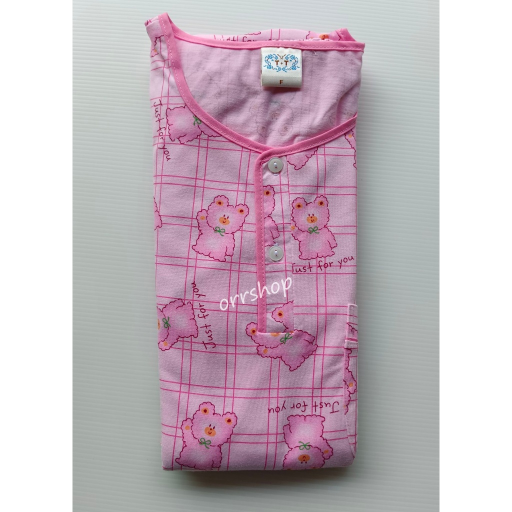 ชุดนอนผู้ใหญ่ ไซส์ฟรีไซส์ F แขนสั้น ขาสามส่วน ผ้ายืด (แบบคอกลม กระดุม 2 เม็ด)
