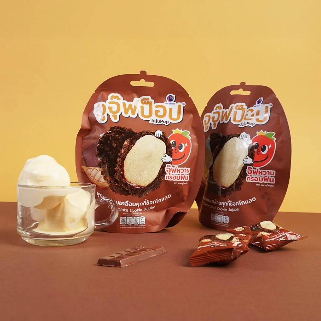ขนมจูจุ๊ฟป็อป 6 ซอง (ช็อกโกแลต 3 + โยเกิร์ต 3) ขนม ผลไม้อบแห้ง พุทรากรอบ กรอบ อร่อย กินเพลิน