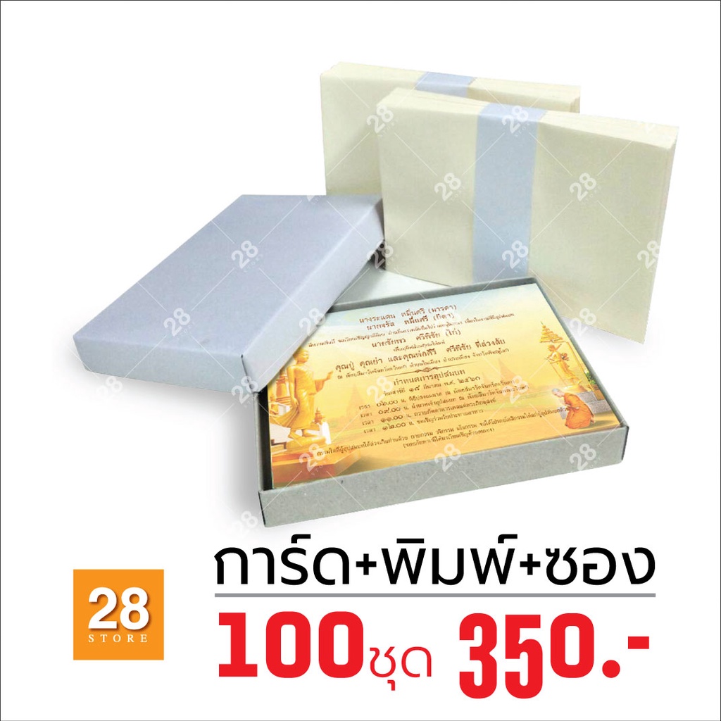 การ์ดงานบวชพร้อมพิมพ์ การ์ดเชิญงานบวชพร้อมพิมพ์ 100 ชุด