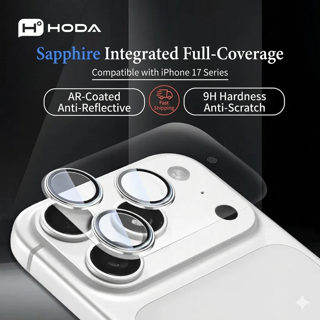 Hoda กระจกเลนส์กล้องพร้อมฐานสำหรับ iPhone 17 Pro / 17 Pro Max รุ่น Sapphire Lens Protector with Lens Base