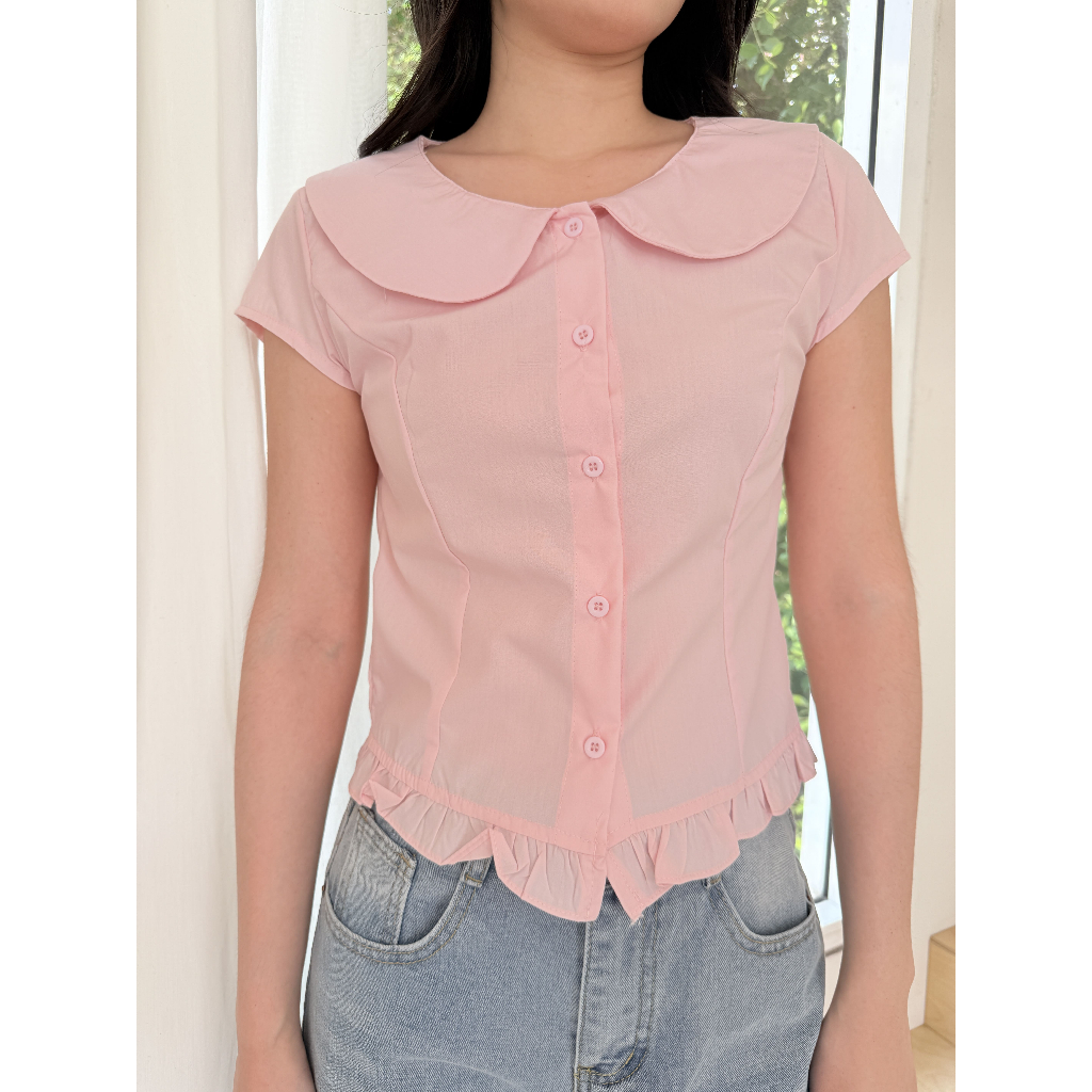 Pradap_bramd:Lune Collar Top (เสื้อแขนสั้นคอบัวชายระบาย)