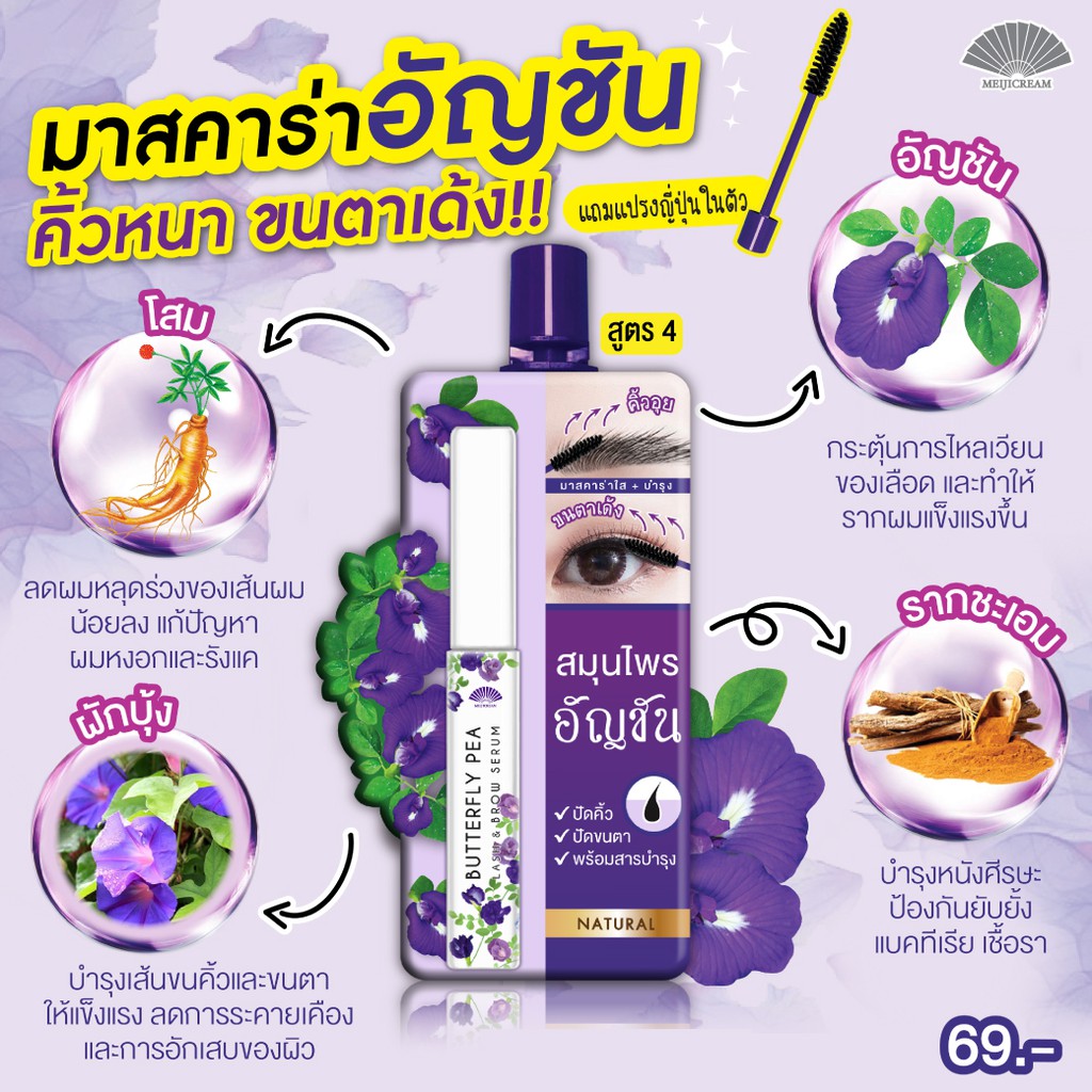 เมจิ อัญชัน บัตเตอร์ฟลาย พี แลช แอนด์ บราว เซรั่ม 3 ก.MEIJI BUTTERFLY PEA LASH & BROW HAIR SERUM 3G.