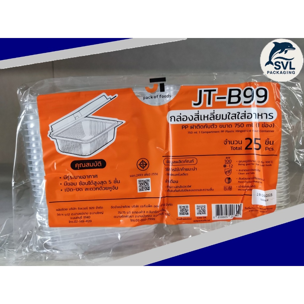 กล่องข้าวพลาสติก กล่องใส่อาหารพลาสติก JT ขนาด 450ml 650ml 750ml 1000ml เข้าไมโครเวฟได้ มีฝาปิด (25ชิ้น/แพ็ค)