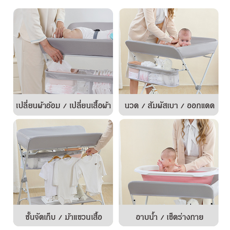 โต๊ะเปลี่ยนผ้าอ้อม ที่เปลี่ยนผ้าอ้อม โต๊ะดูแลทารกเด็กแรกเกิด นวดและอาบน้ำ โต๊ะดูแลทารก พับและยกได้ ล้อหมุนได้ 0–12 เดือน