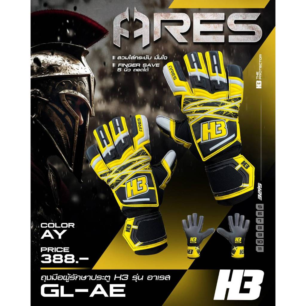 ถุงมือผู้รักษาประตู ถุงมือโกล H3 รุ่น ARES มี finger safe 5 นิ้ว ราคาถูก