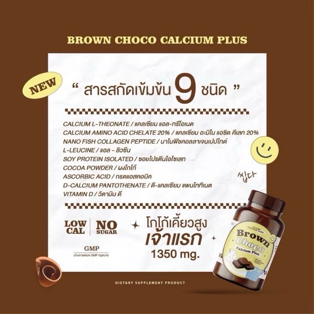 พร้อมส่ง💖โกโก้เคี้ยวสูง/คุ้กกี้เคี้ยวสูง 1แถม1 🍫Brown Choco แคลเซียมเพิ่มสูงกระปุกละ20เม็ด