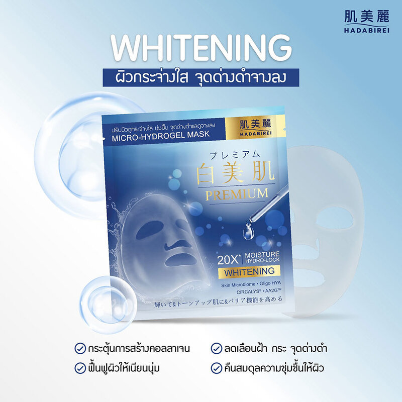 HADABIREI Premium Whitening Micro-HydroGel Mask 20g แผ่นมาสก์ไฮโดรเจล ฮาดะบิเรอิ ช่วยปรับผิวดูกระจ่างใส ชุ่มชื้น.