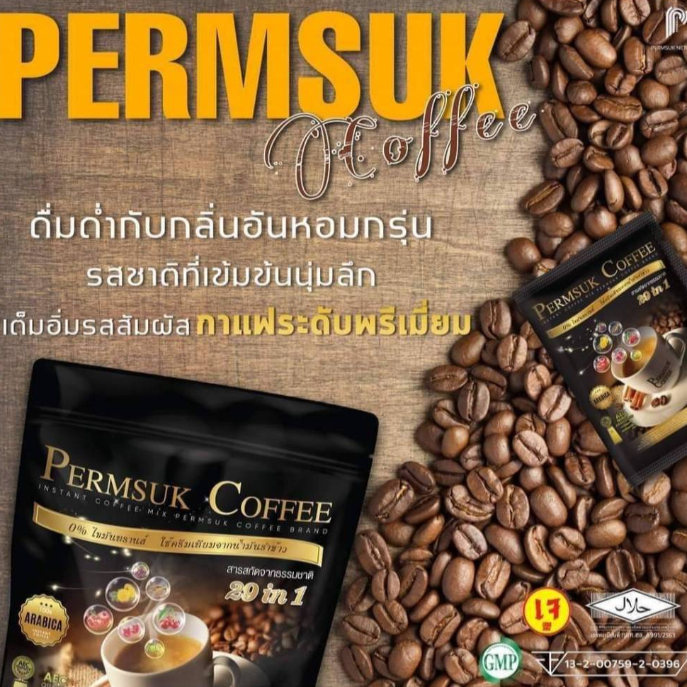 กาแฟเพิ่มสุข ( โปร 6 ห่อ) Permsuk Coffee 6 ห่อ(90ซอง)