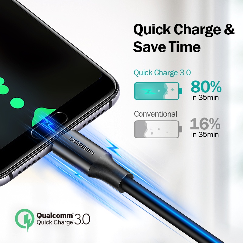Ugreen สายชาร์จ USB-C 3A QC 3.0 S20/Note 20/S10/S9/S8, Xiaomi, รุ่น US287