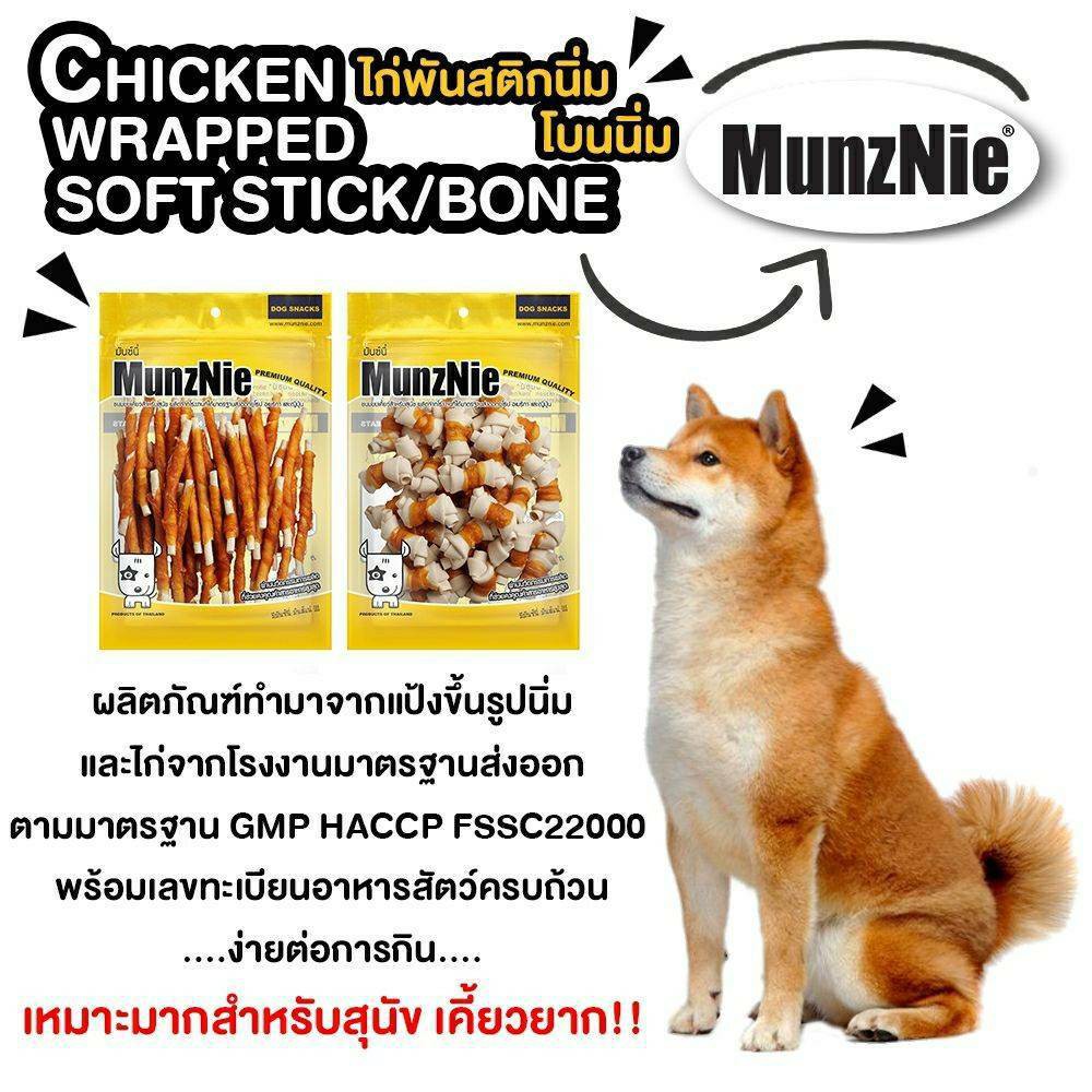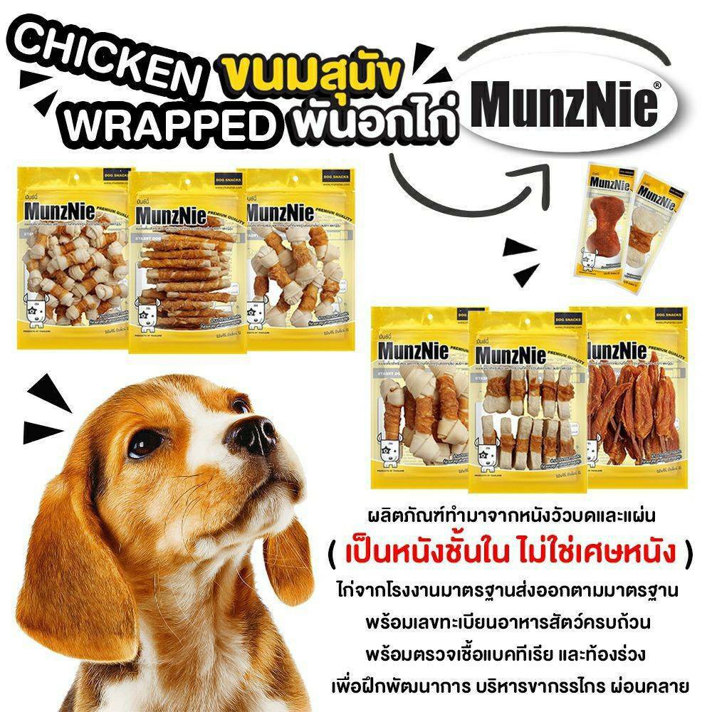 ขนมสุนัขมันซ์นี่ (MunzNie) ถุงสีเหลือง และ ขนมสุนัข Happiness ไก่อบกรอบโฮมเมด