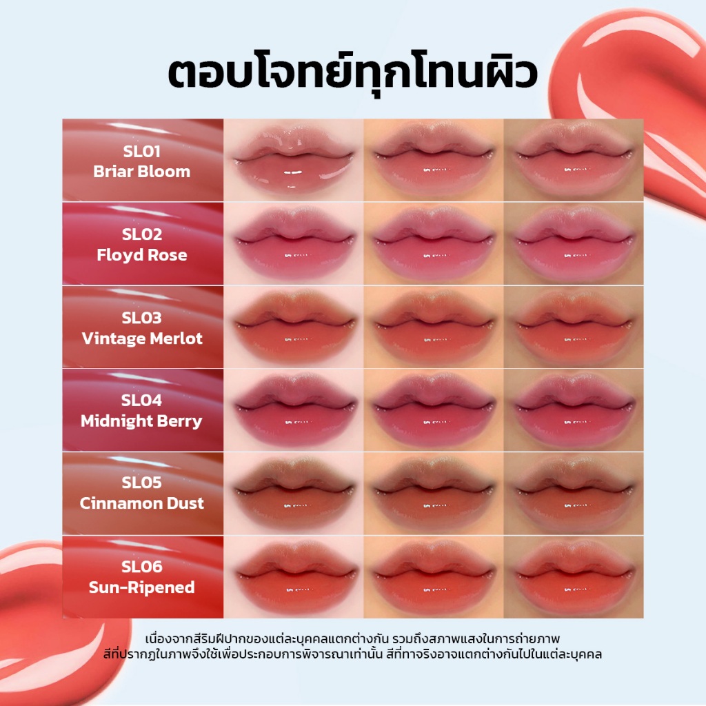 SKYMI Glossy Lip Stain ลิปกลอสฉ่ำวาว ชุ่มชื้น ติดทน จูบไม่หลุด เนื้อบางเบา ไม่เหนียว บำรุงริมฝีปาก พร้อมส่ง SL01-SL06