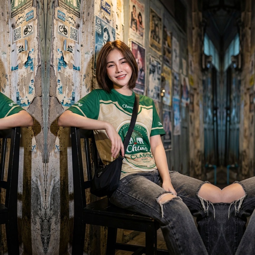 เสื้อลายช้าง สีเขียวครีม (Earth Tone)N0-15 งานพรีเมียม ผ้าพริ้วใส่สบาย เสื้อเชิ้ตลายช้าง