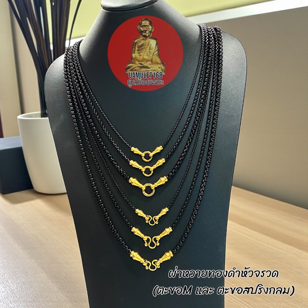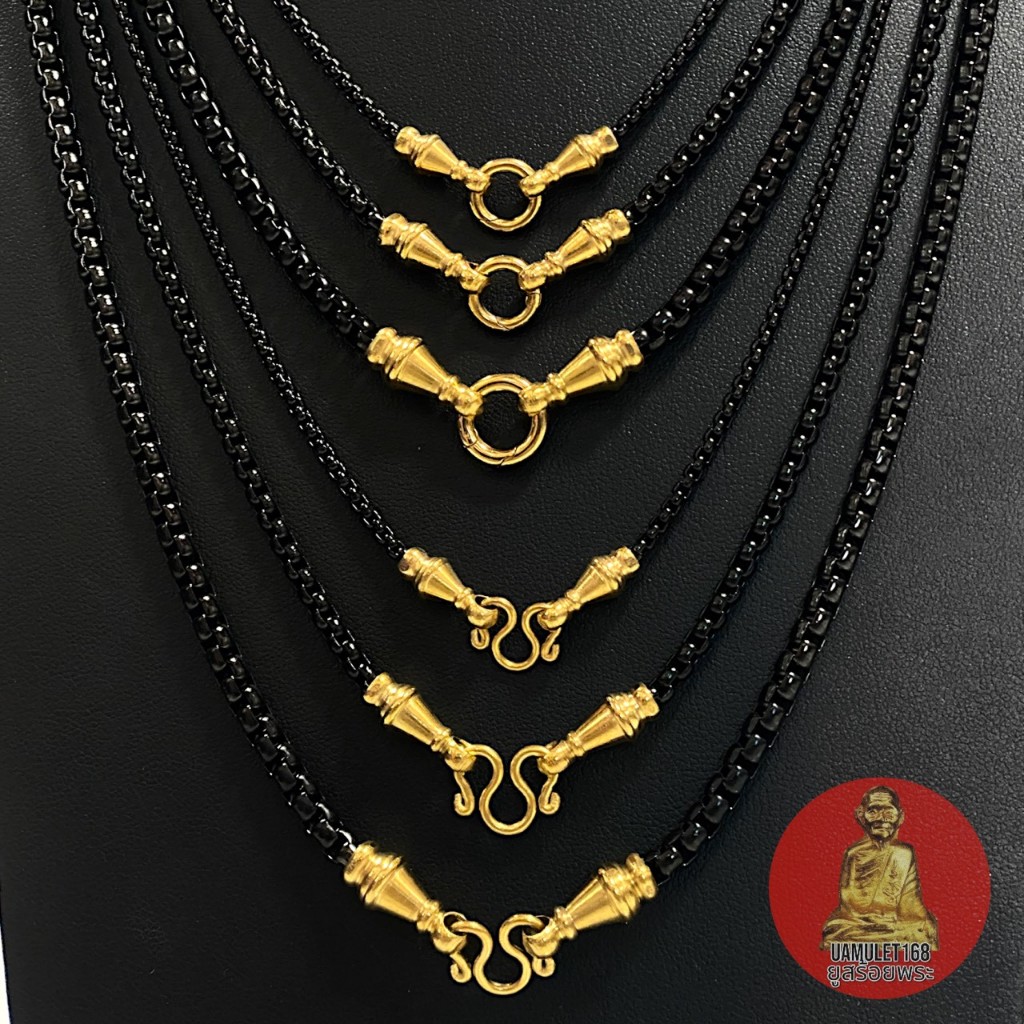 สร้อยสแตนเลสเลเซอร์ ลายผ่าหวายทองดำ แต่งหัวจรวด ตะขอM และ ตะขอสปริงกลม มี 3 ขนาด สแตนเลสแท้ ไม่ลอกไม่ดำ