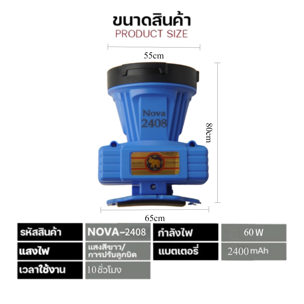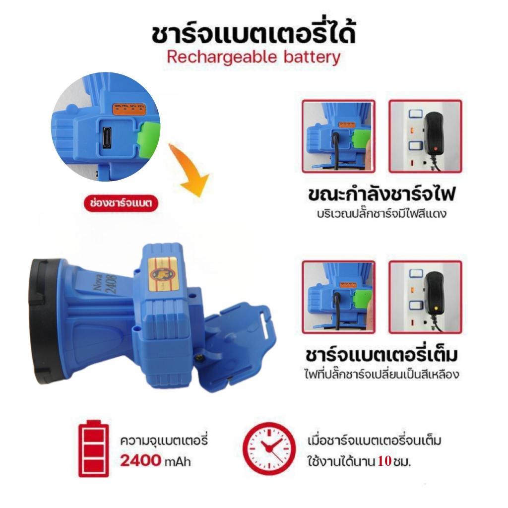 Nova-2408 ไฟฉายคาดหัว LED ไฟแรง ชาร์จไฟได้ กันน้ำ ตกปลา แค้มปิ้ง งานกลางคืน แถมชาร์จเจอร์ ลดพิเศษ