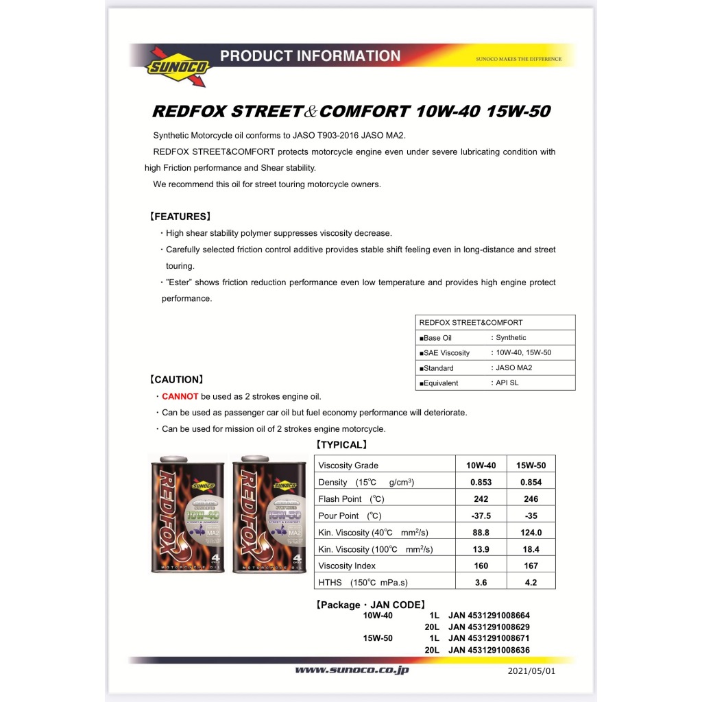 น้ำมันเครื่อง SUNOCO REDFOX STREET & COMFORT 10W-40 / 15W-50 ผลิต และ นำเข้าจากญี่ปุ่น