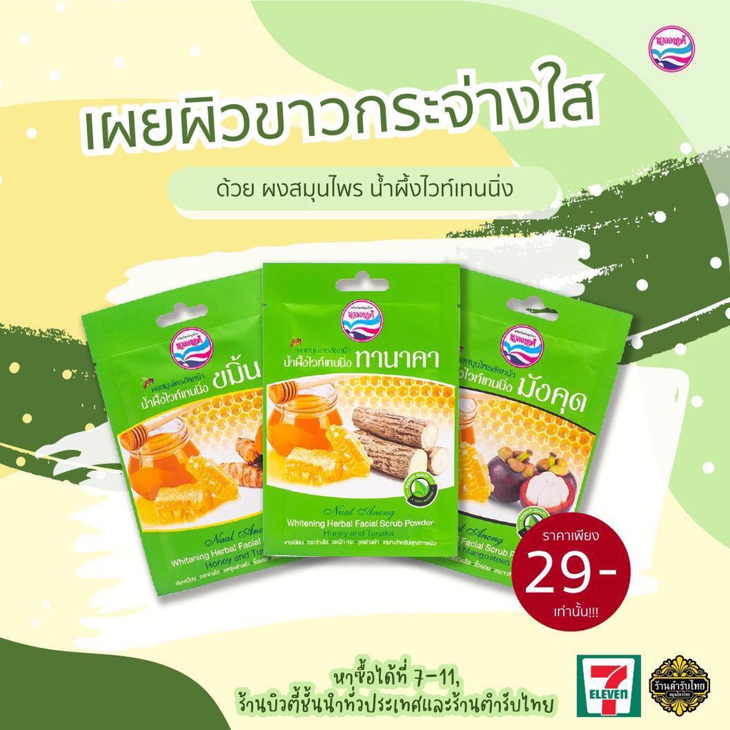 Nualanong สบู่สมุนไพร สบู่นวลอนงค์ ผงสมุนไพรขัดหน้า นวลอนงค์ สูตรน้ำผึ้งขมิ้น 15 กรัม