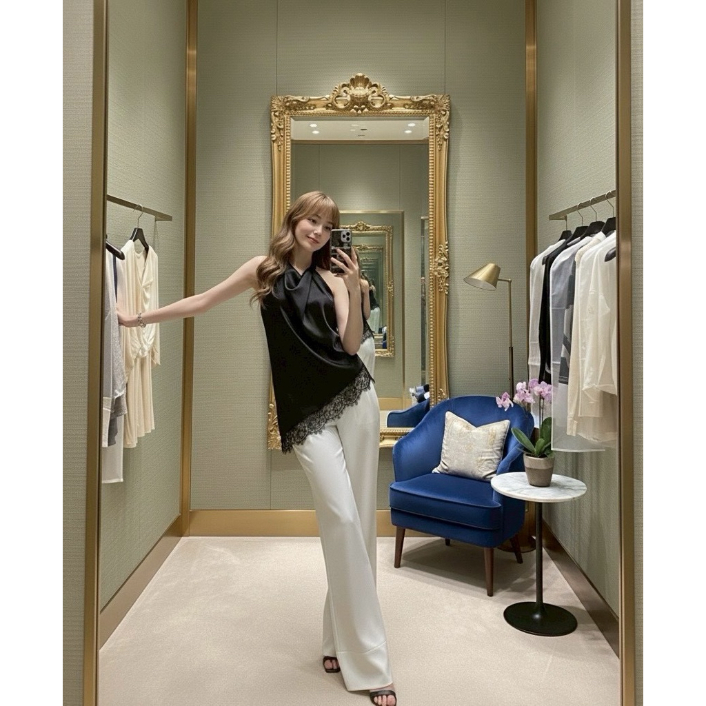 BY IRA 2025-72 August Mini เสื้อชั้นในสตรีผ้าไหมลูกไม้หรูหราพร้อมปกแนวทแยง