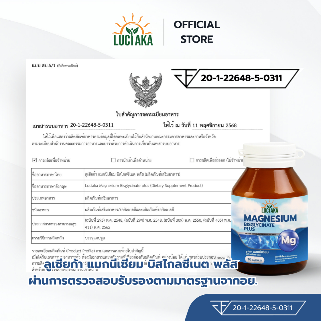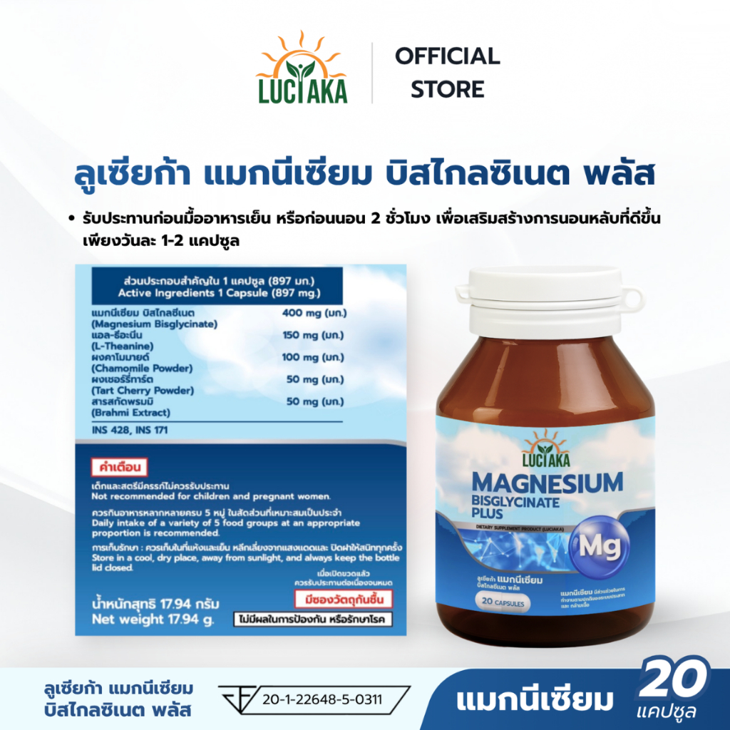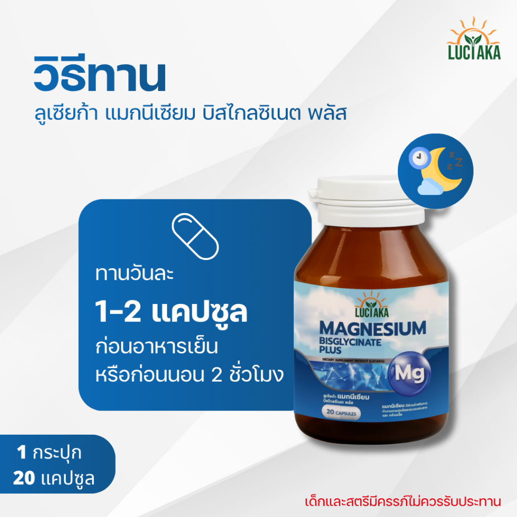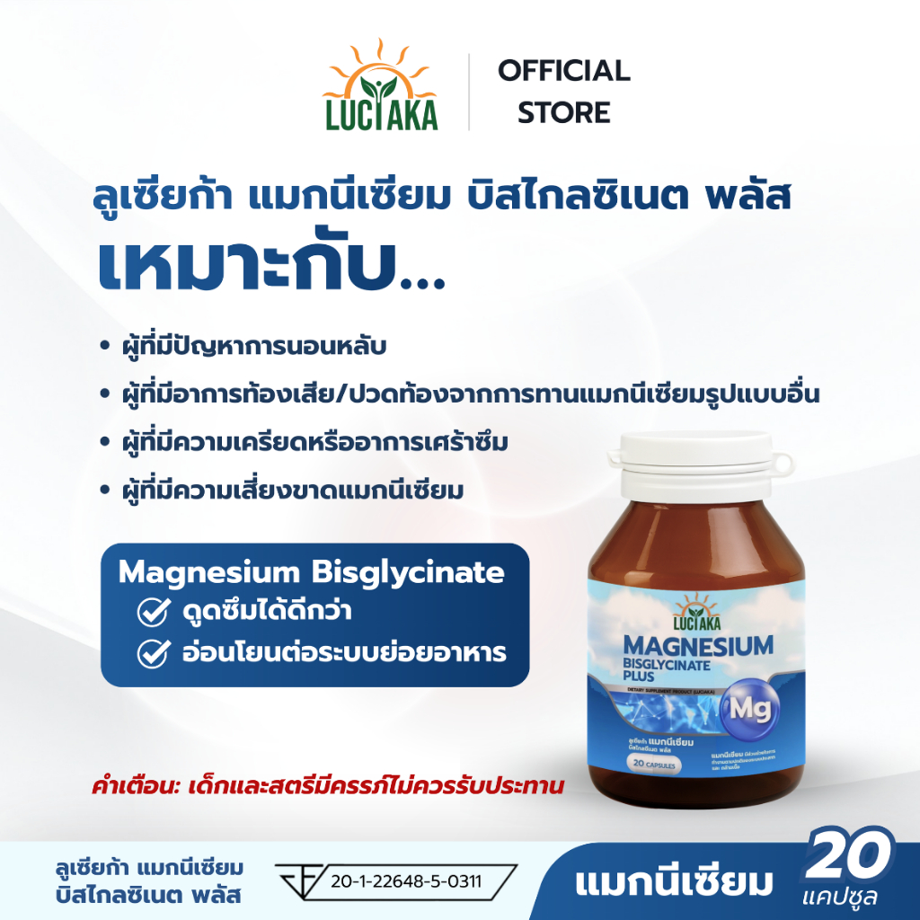 Luciaka Magnesium Misglycinate Plus ลูเซียก้า แมกนีเซียม บิสไกลซิเนต พลัส [20 แคปซูล] ผ่อนคลาย