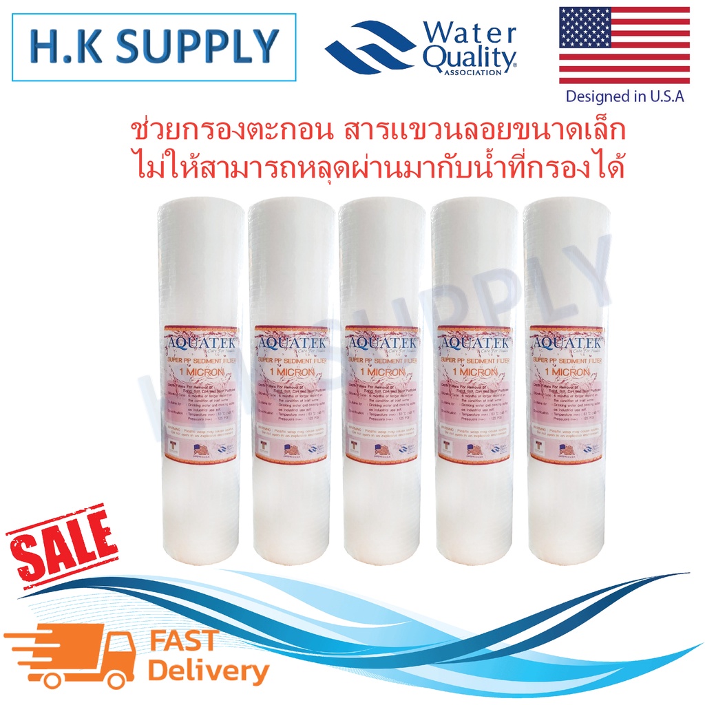 Aquatek ไส้กรองนํ้า PP 10 นิ้ว แบบลอน 1 5 ไมครอน ไส้กรอง พีพี Aquatek USA 🇺🇸 Groove Sediment 1 5 Micron 10"x2.5" b