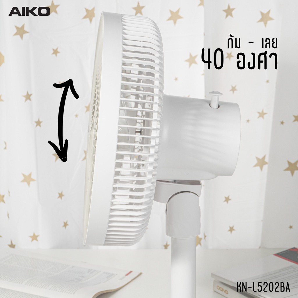 AIKO KN-L5202BA พัดลมชาร์จไฟ ใบพัด 12 นิ้ว ชาร์จ USB พัดลมพกพา พัดลมใช้แบตเตอรี่ พัดลมส่าย ก้มเงย