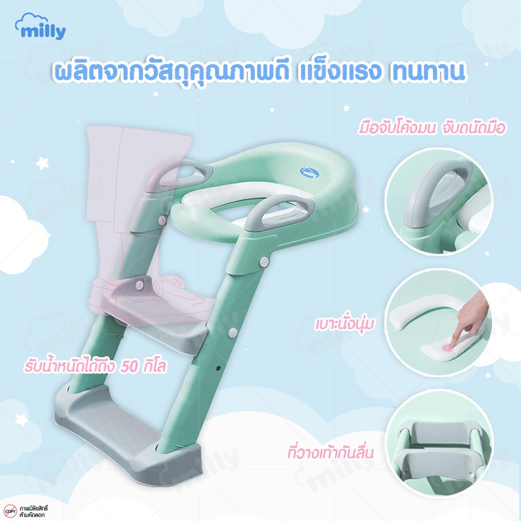 Milly บันไดเข้าห้องน้ำ เบาะนุ่ม นั่งสบาย ที่รองนั่งสำหรับเด็ก ฝารองชักโครก บันไดปีนชักโครก Potty Training Seat