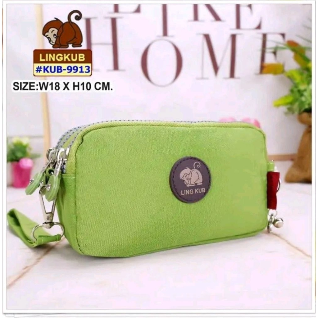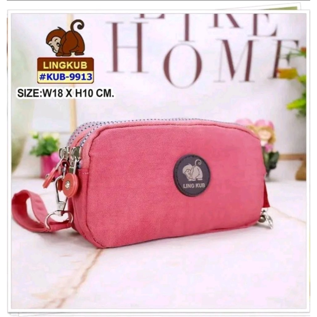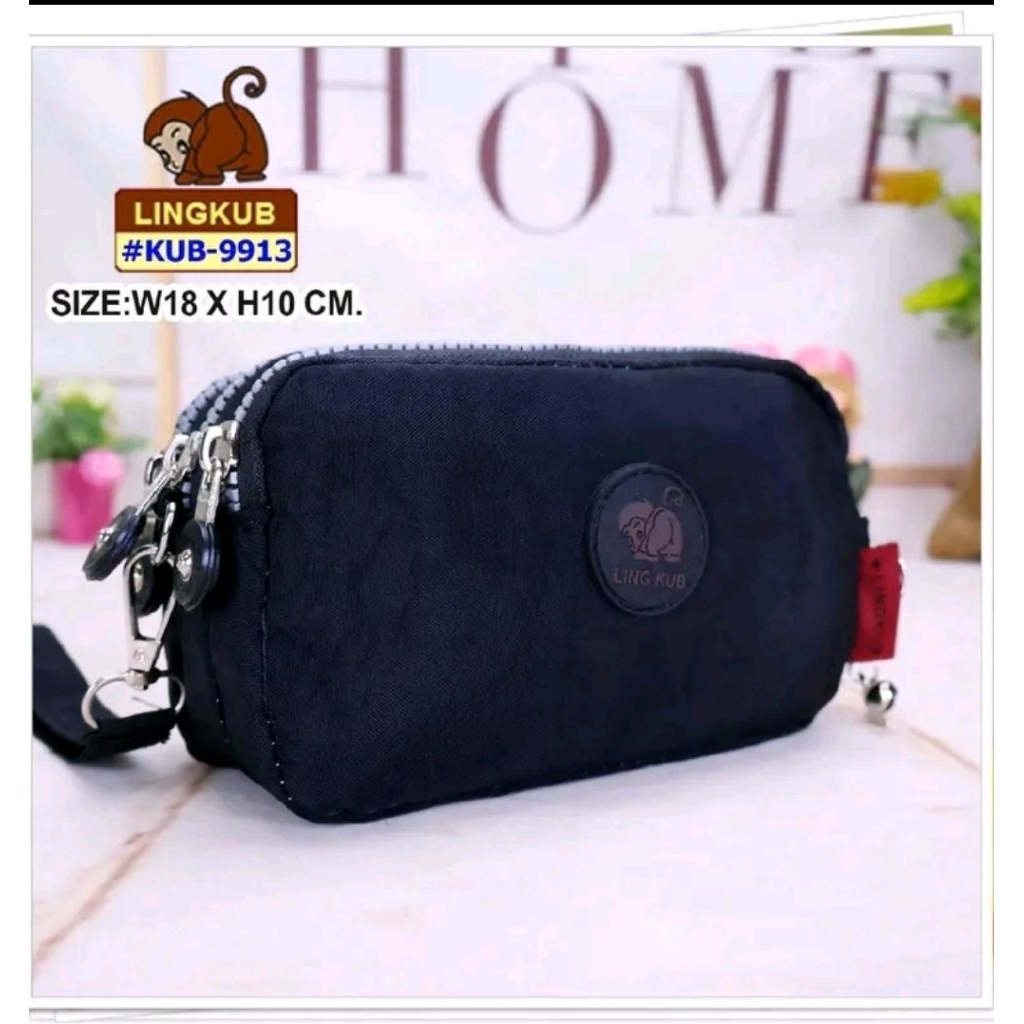 กระเป๋าผ้าคล้องมือ 3 ซิป Lingkub kb-9913 ขนาดฐาน 7 นิ้ว สูง 4 นิ้ว #คุณยายขายกระเป๋า