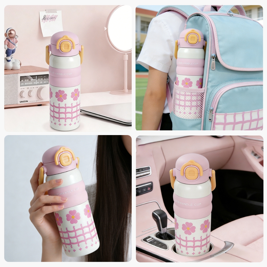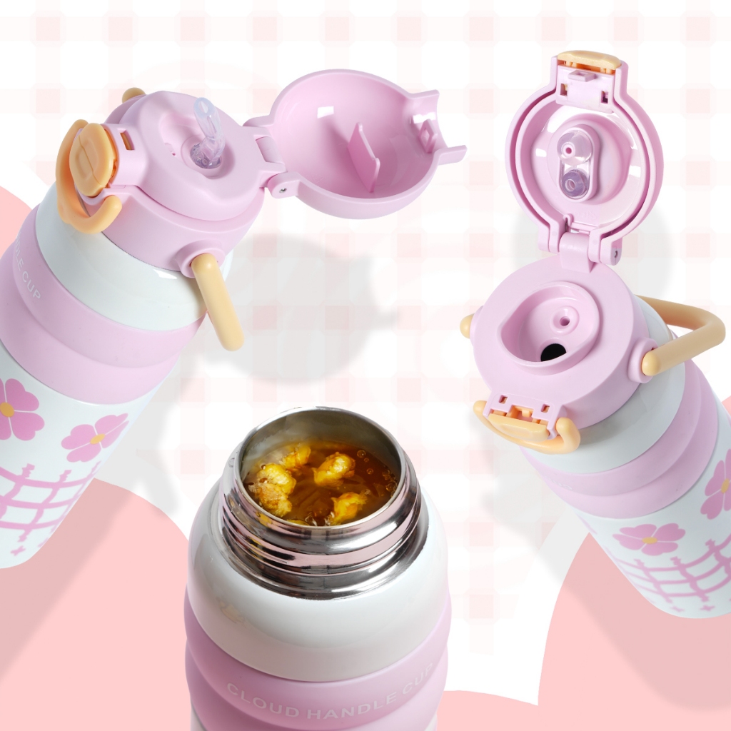 กระบอกน้ำเด็ก สแตนเลส 316 ปลอดสาร BPA 600ml/20oz พร้อมหลอด มีหูหิ้ว ดีไซน์น่ารัก แก้วน้ำเก็บความเย็น ขวดน้ํา